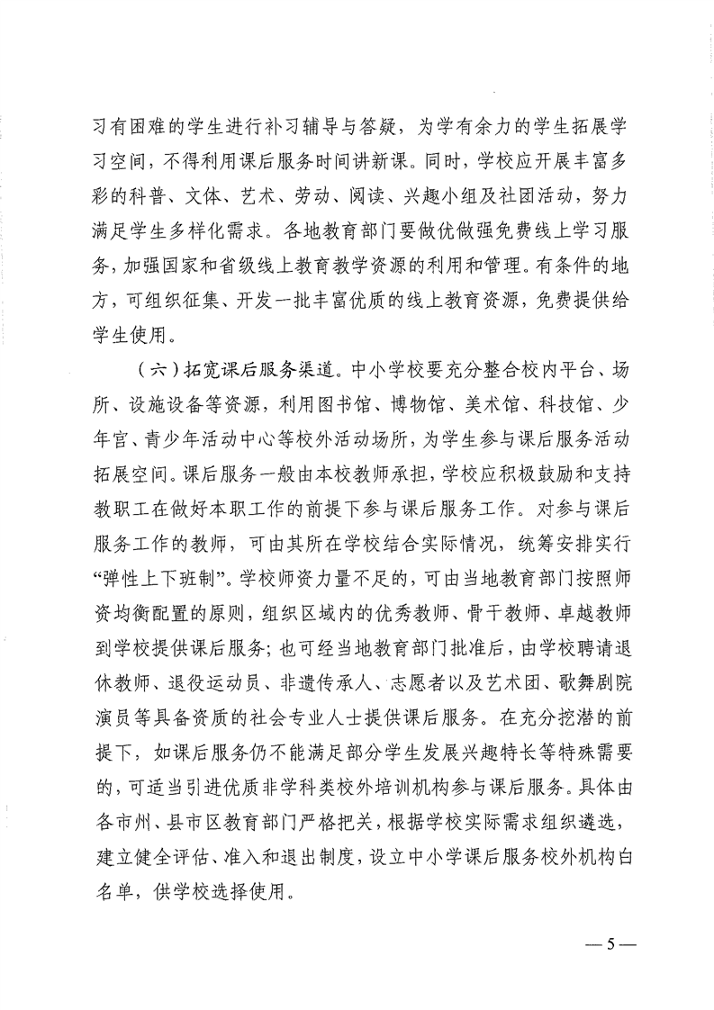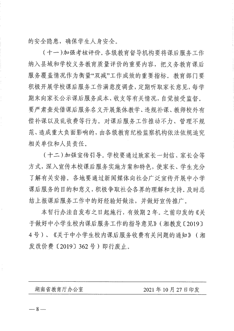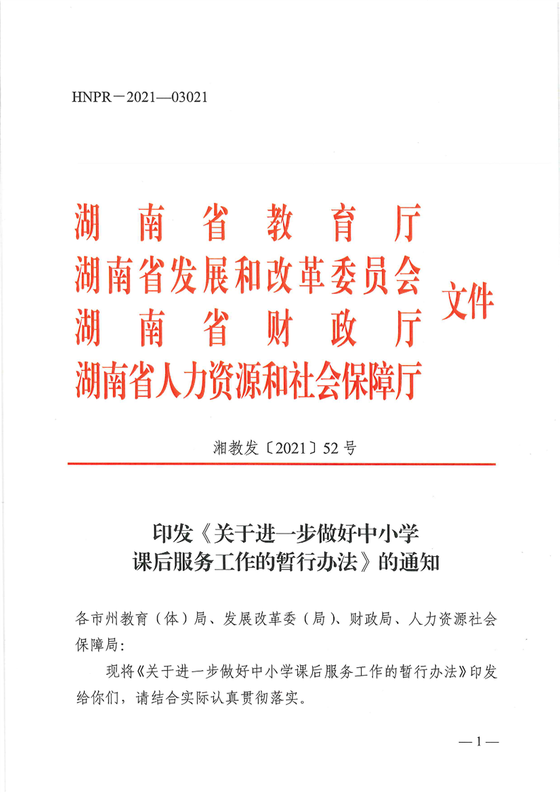 《关于进一步做好中小学课后服务工作的暂行办法》(湘教发〔2021〕52号)