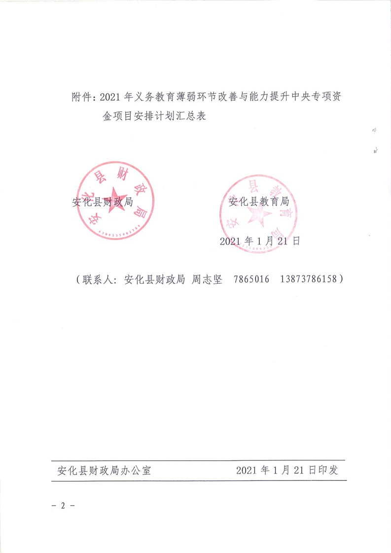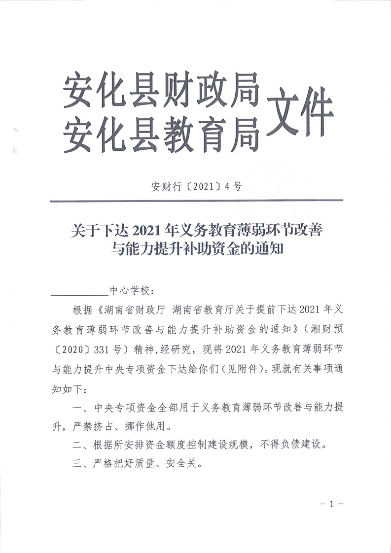 安财行〔2021〕4号关于下达2021年义务教育薄弱环节改善与能力提升补助资金的通知