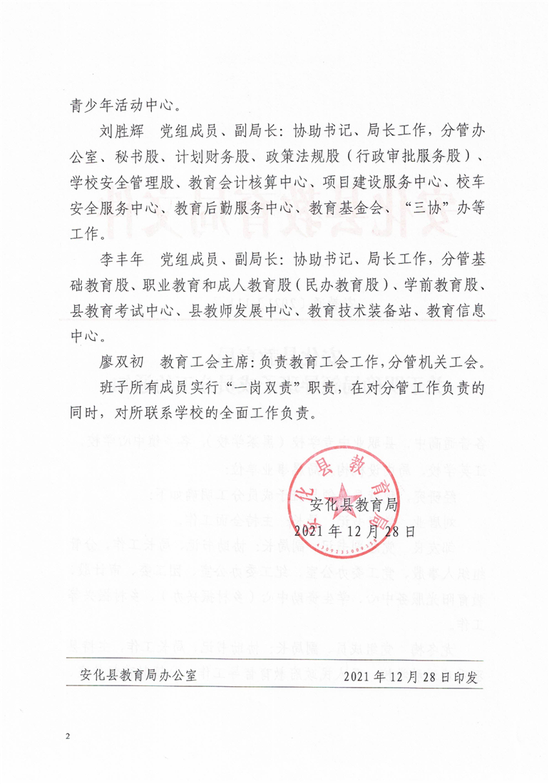 安化县教育局关于明确领导班子成员分工的通知(安教通〔2021〕111号 (1)