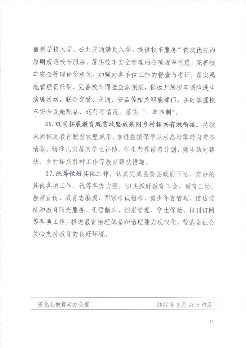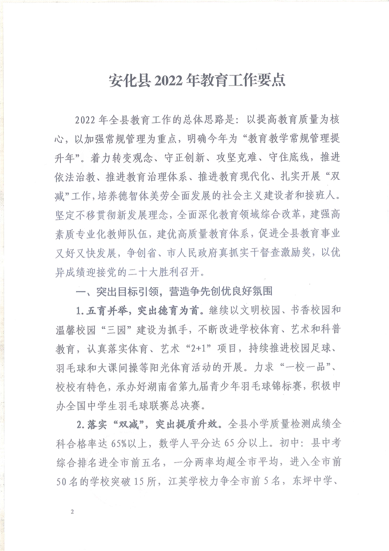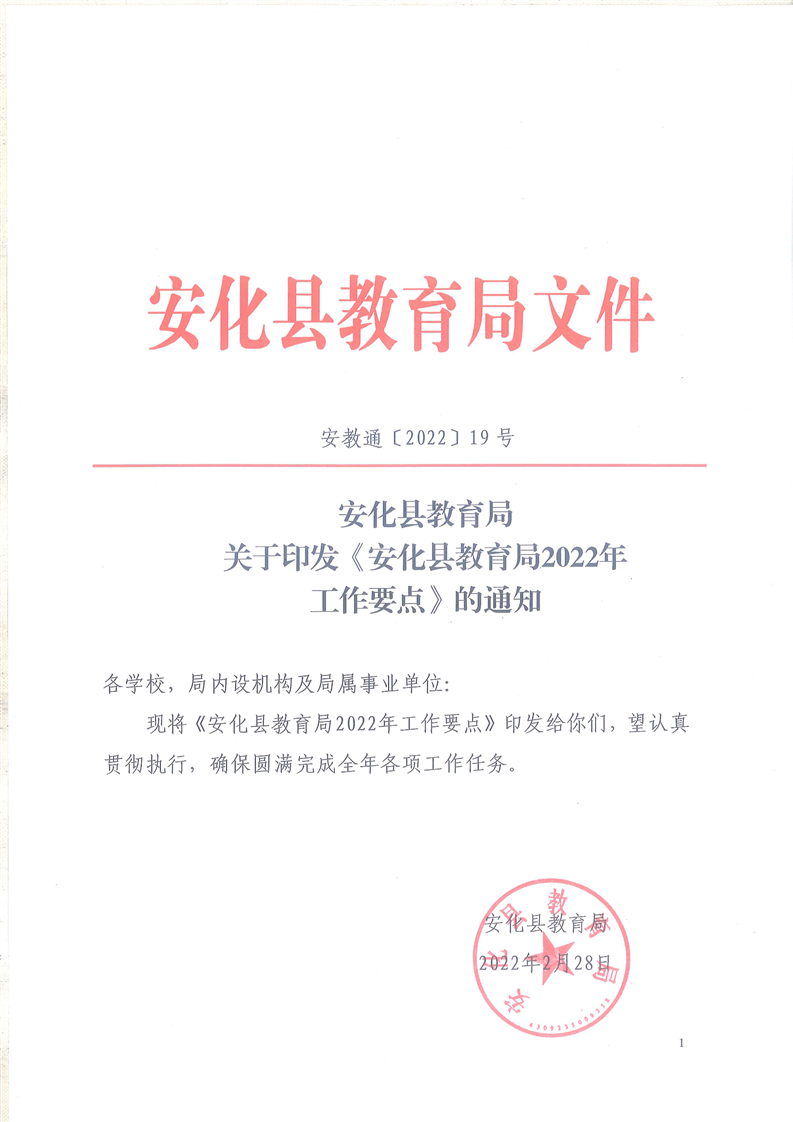 安化县教育局关于印发《安化县教育局2022年工作要点》的通知