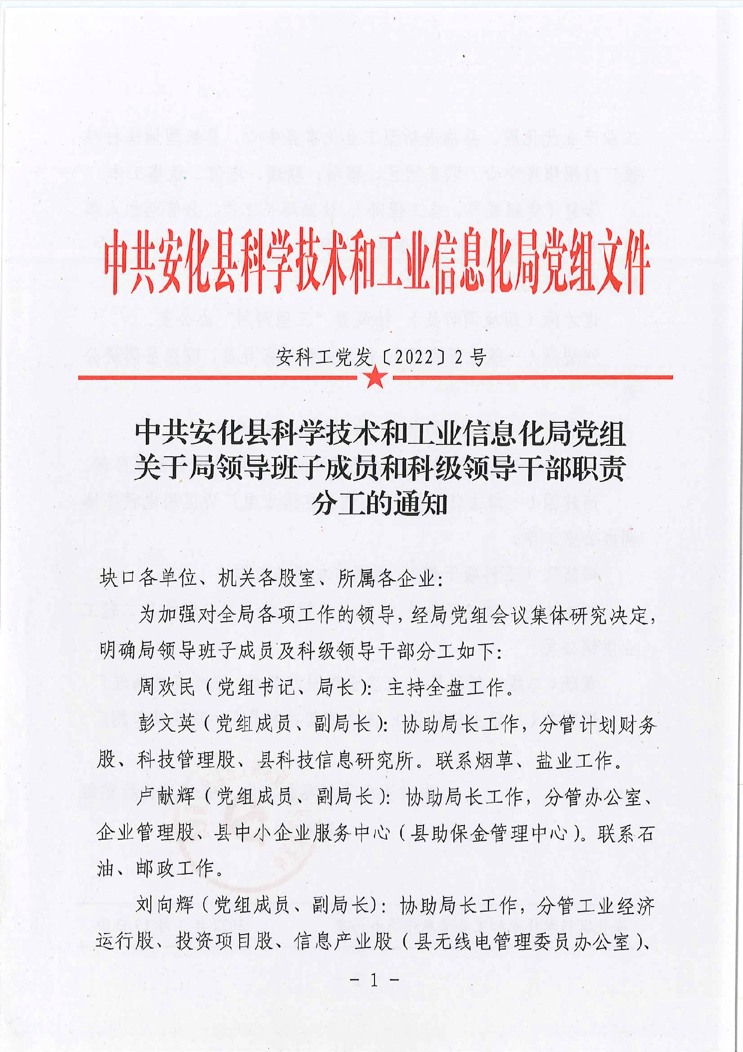 关于2022年局领导班子成员和科级领导干部职责分工的通知