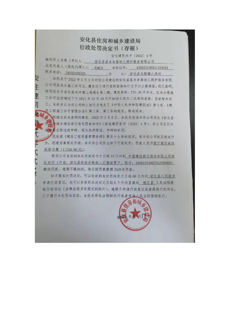安住建罚决字[2022]4号