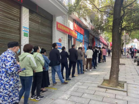检测期间,干职工严格落实疫情防控措施,佩戴口罩,有序进行,在现场工作人员的统一安排下,参检人员有序排队,依次完成体温检测,进行身份登记、扫场所码、配合医护人员完成样本采集等环节,保证了核酸检测的高效进行。