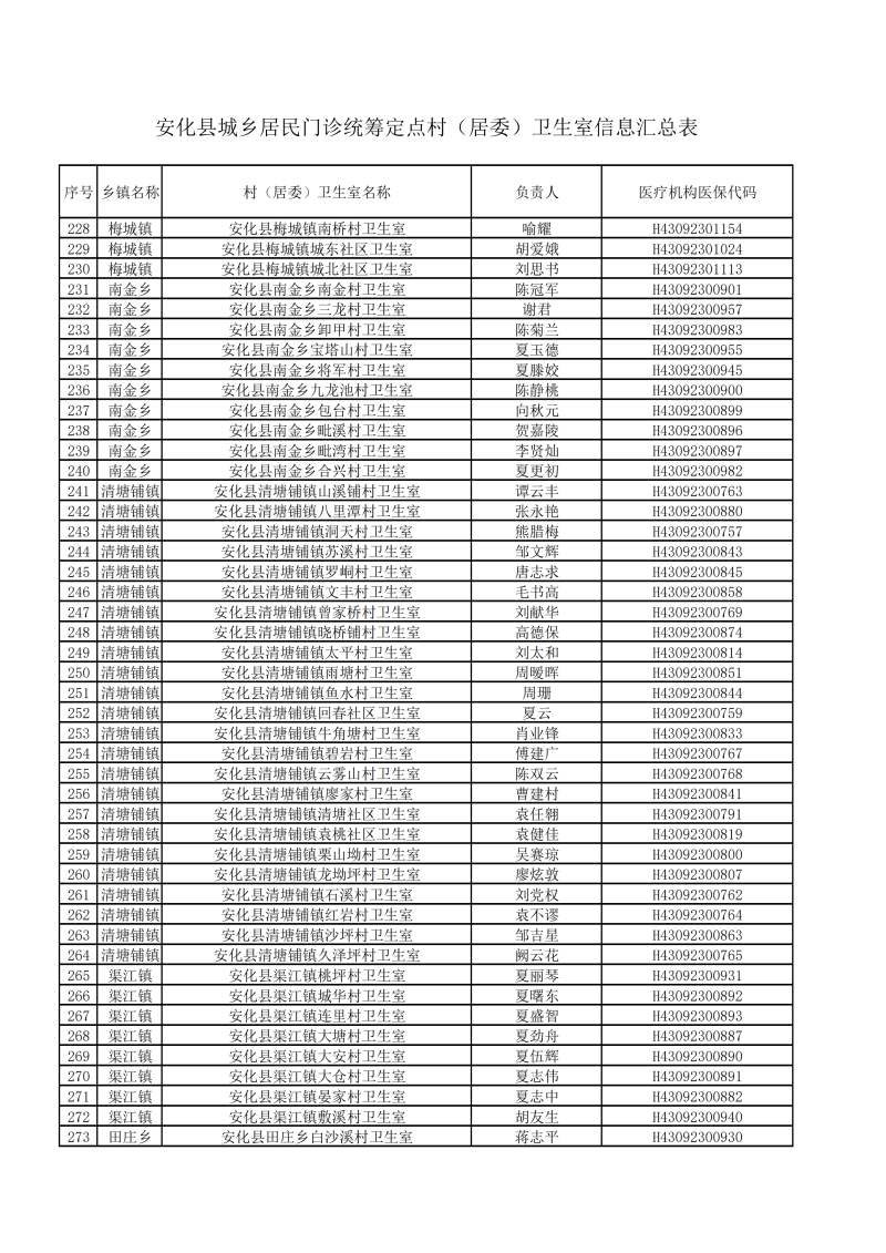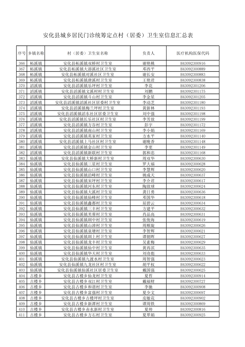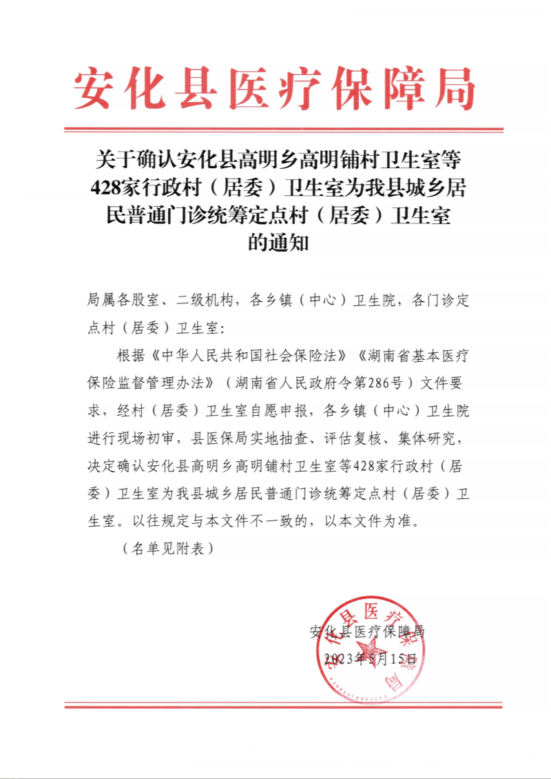 关于确认安化县高明乡高明铺村卫生室等428家行政村(居委)卫生室为我县城乡居民普通门诊统筹定点村(居委)卫生室通知的公示