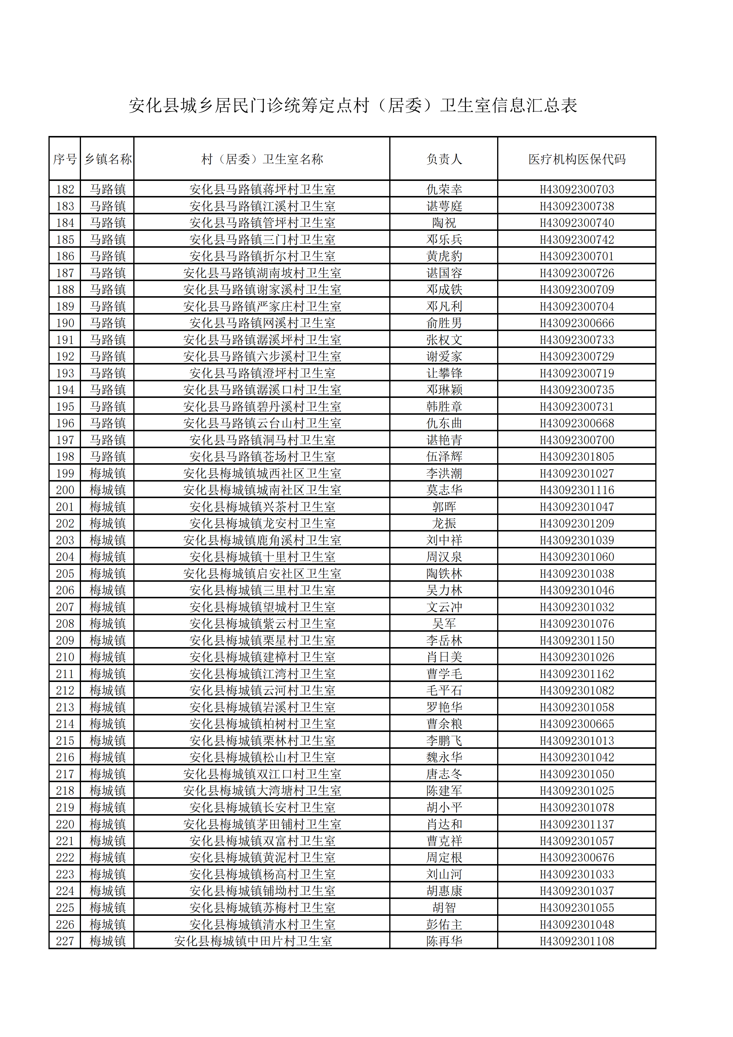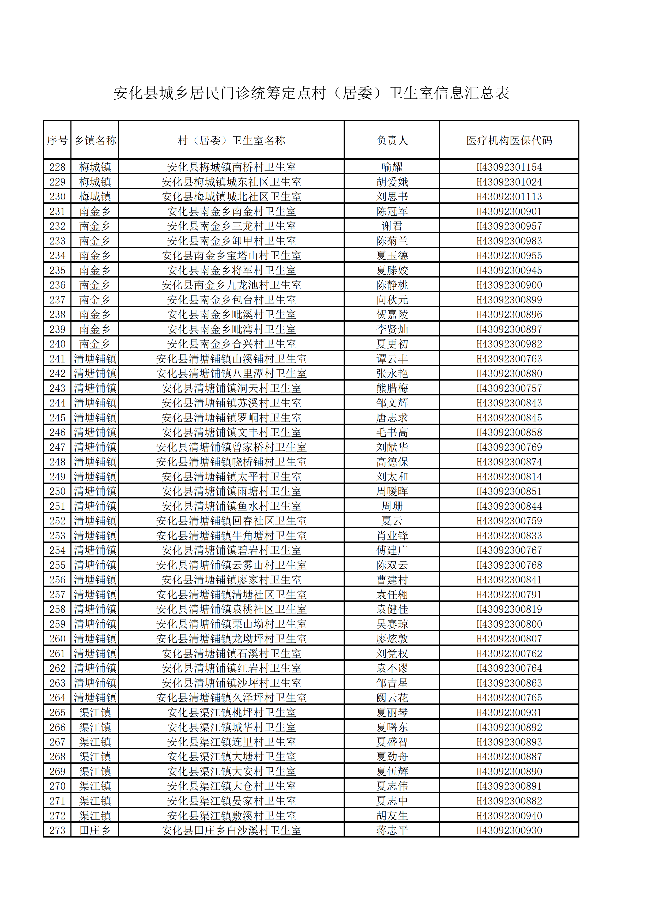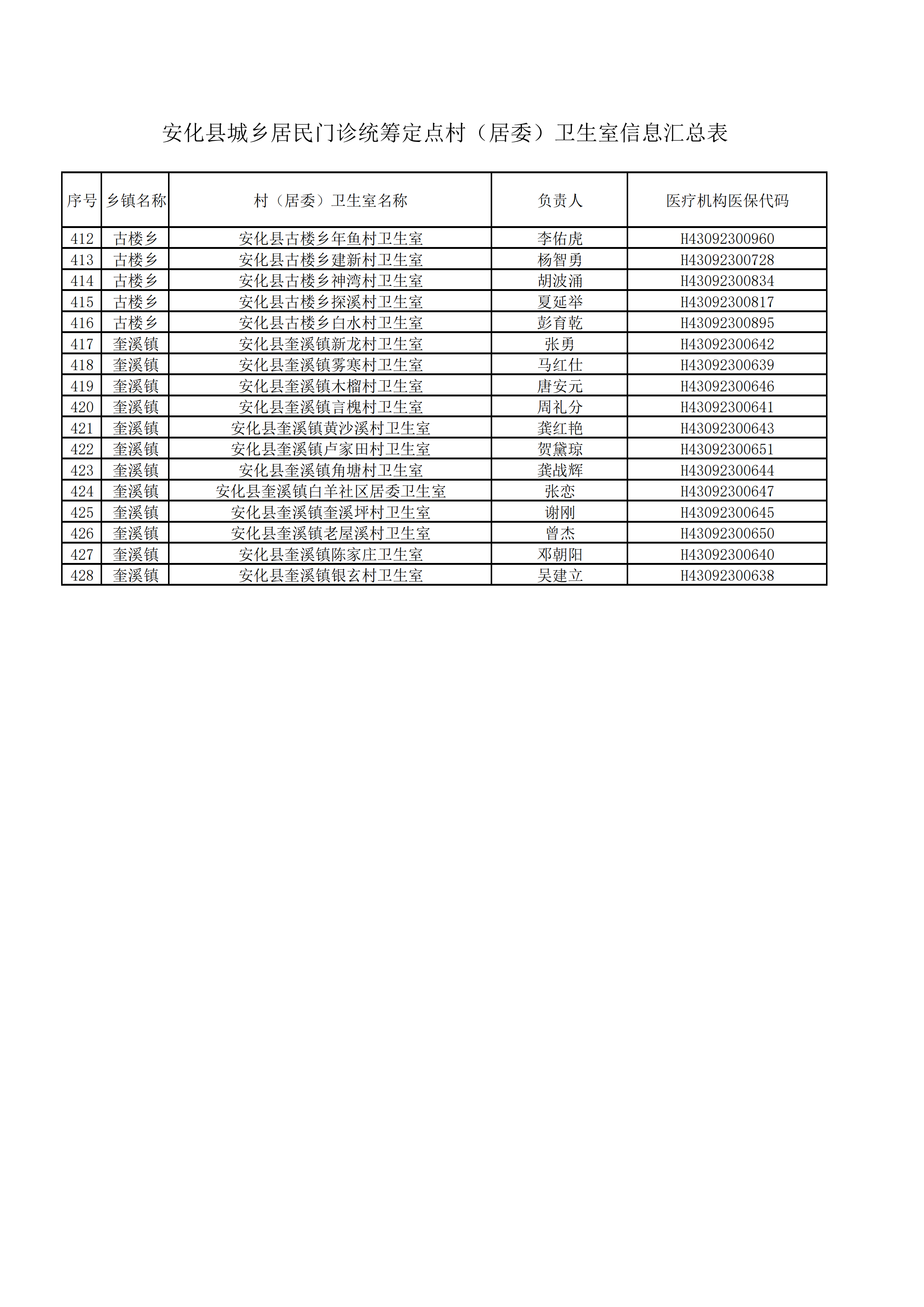 关于确认安化县高明乡高明铺村卫生室等428家行政村(居委)卫生室为我县城乡居民普通门诊统筹定点村(居委)卫生室通知的公示