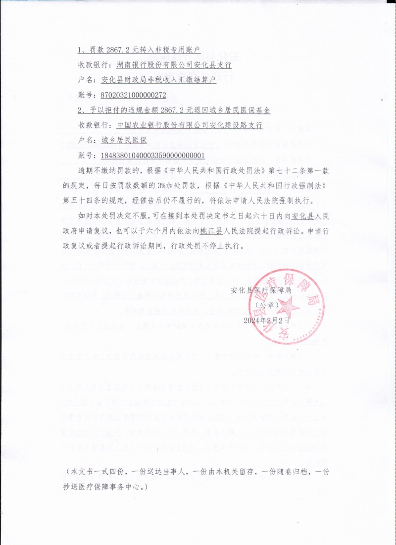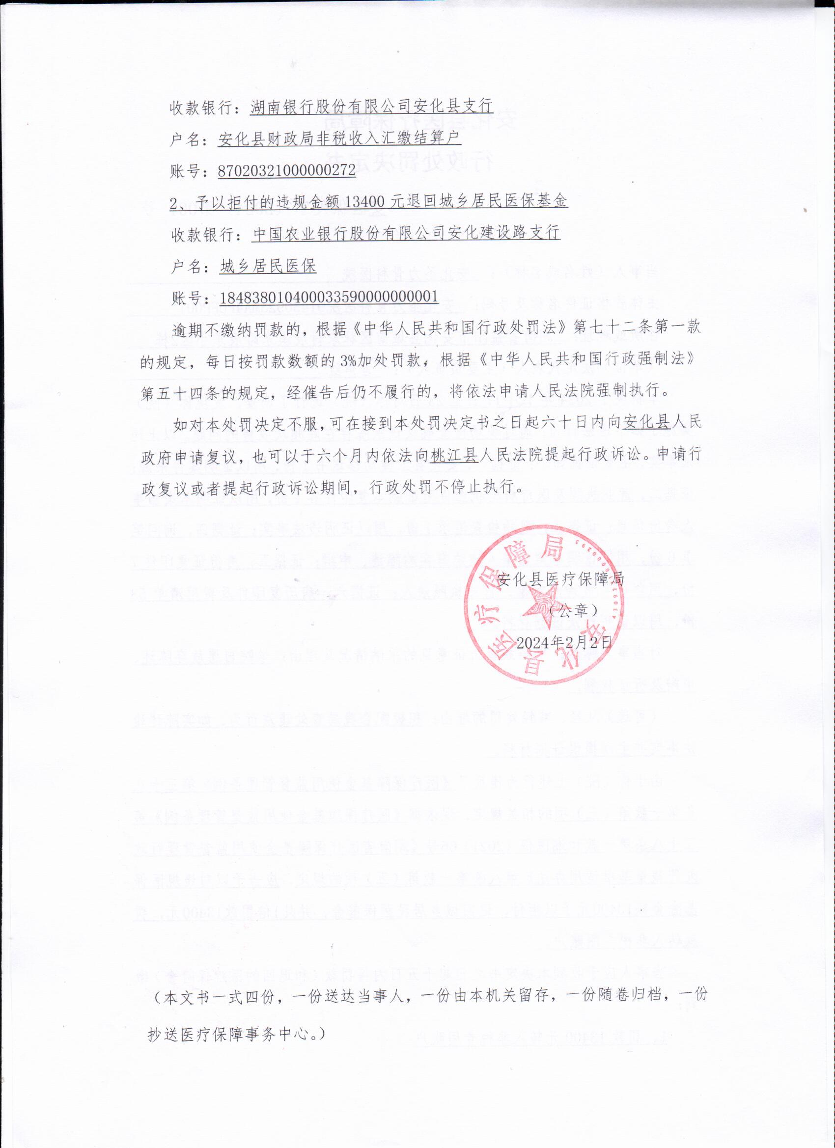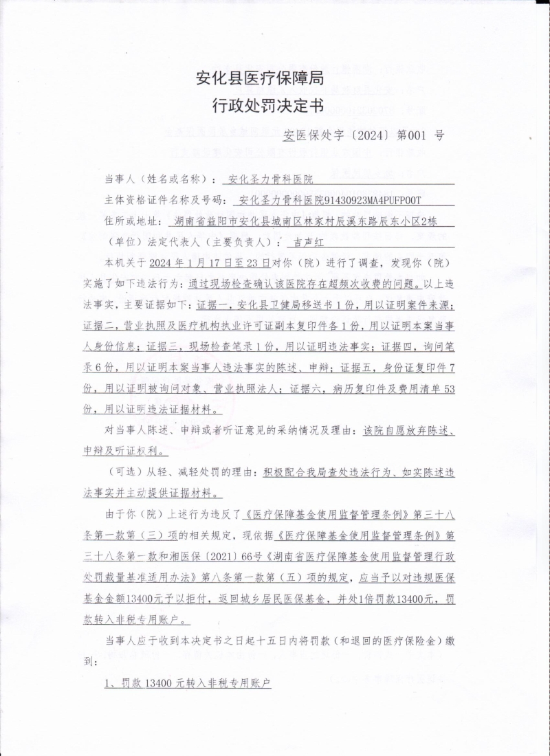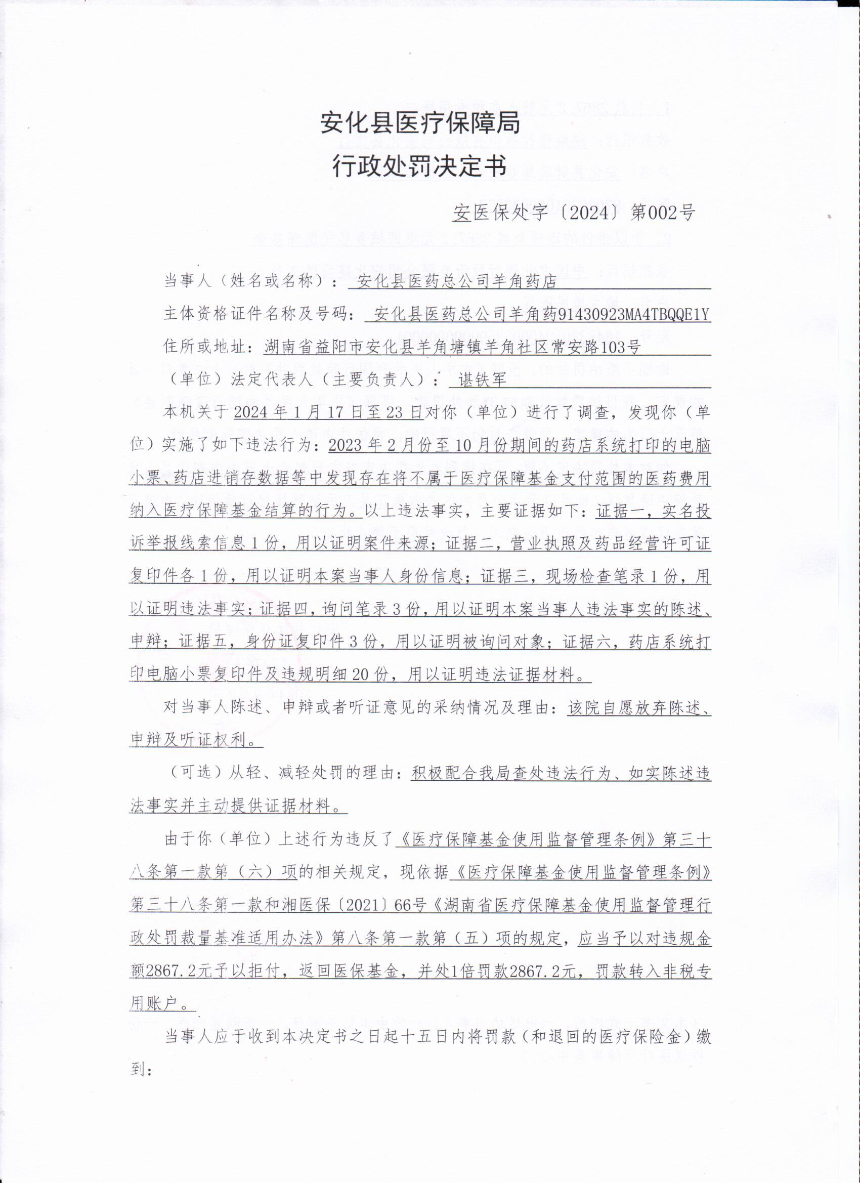 安化县医疗保障局对安化县医药总公司羊角药店、安化圣力骨科医院两家医药机构的行政处罚公示