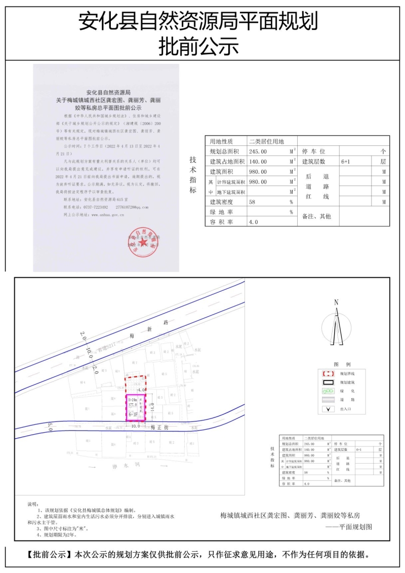 梅城镇城西社区龚宏图、龚丽芳、龚丽姣等私房总平面图批前公示