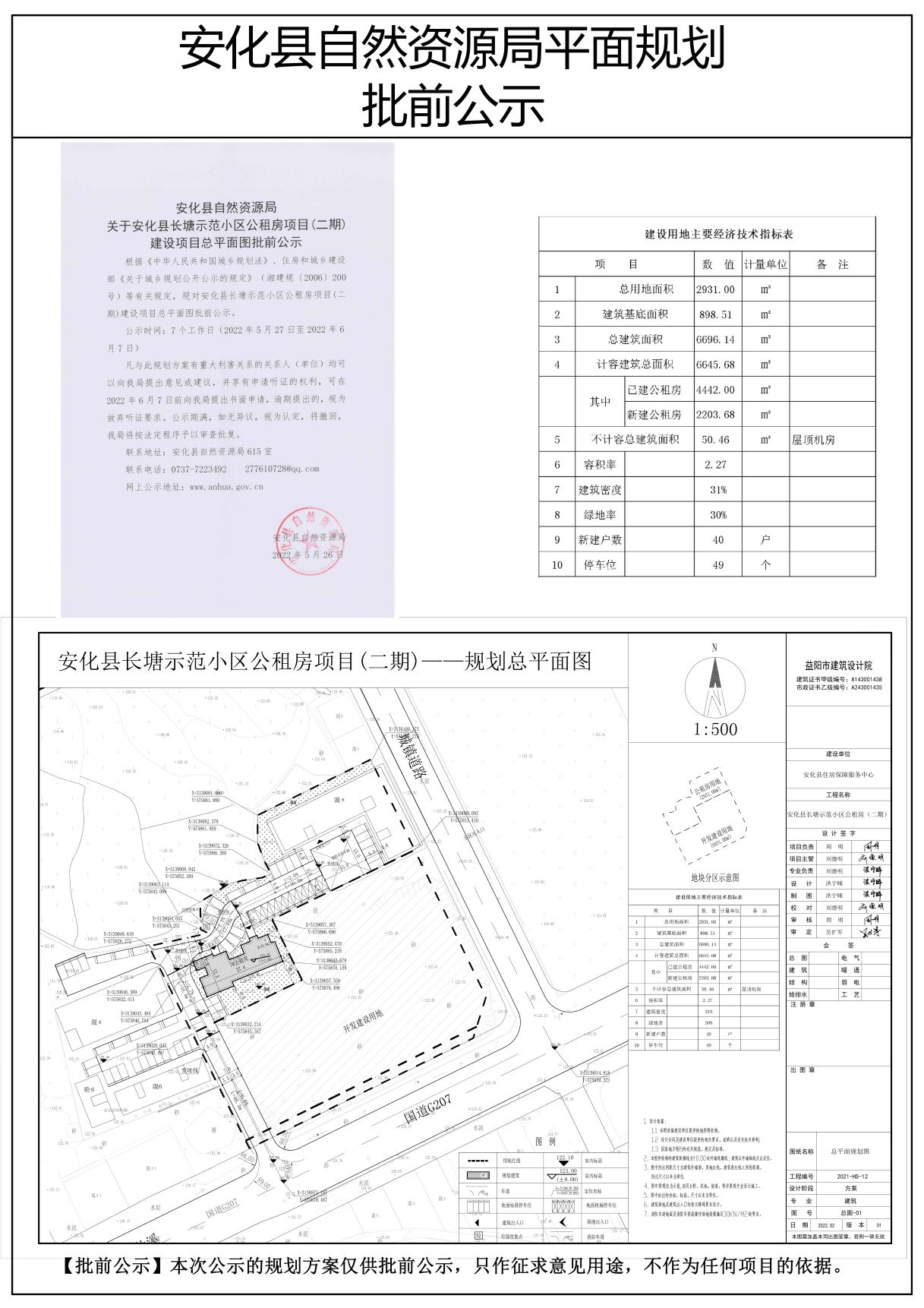 安化县长塘示范小区公租房项目(二期)建设项目总平面图批前公示