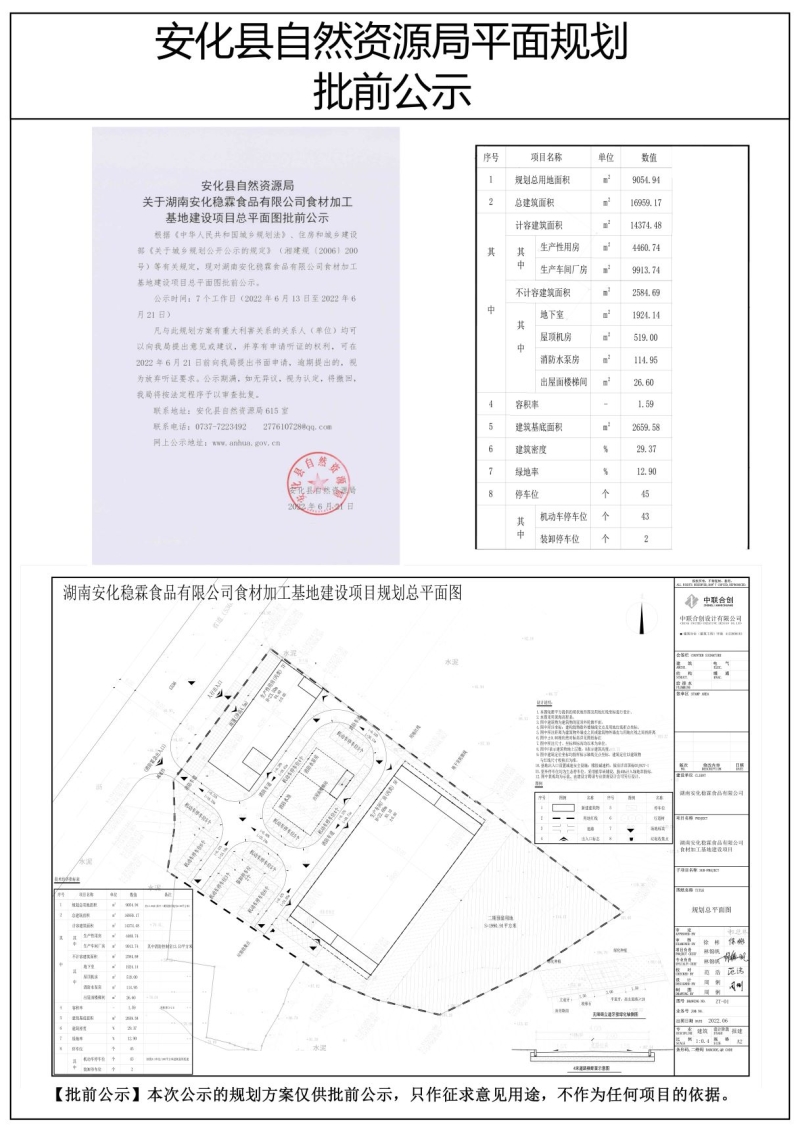 湖南安化稳霖食品有限公司食材加工基地建设项目总平面图批前公示