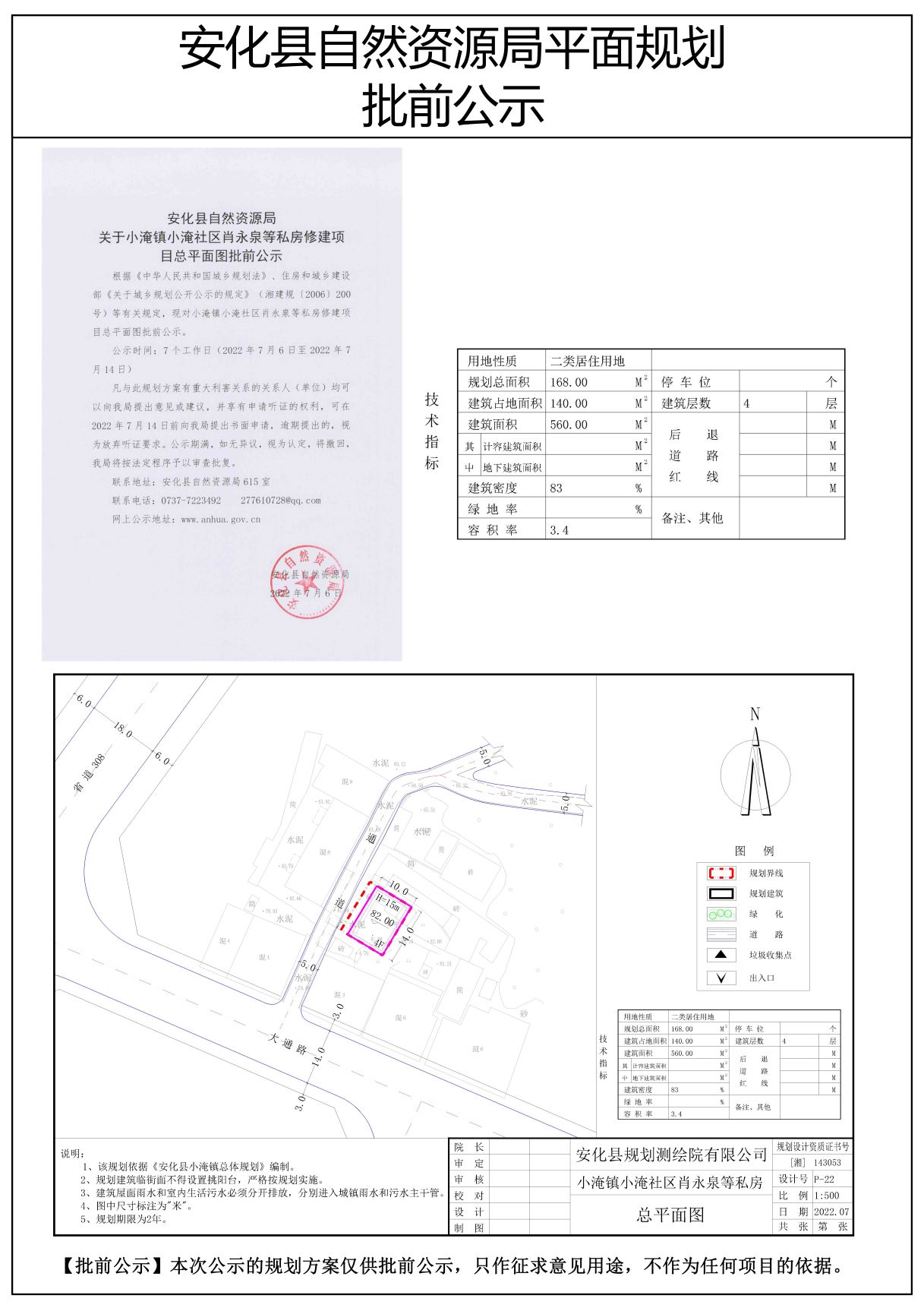 小淹镇小淹社区肖永泉等私房修建项目总平面图批前公示