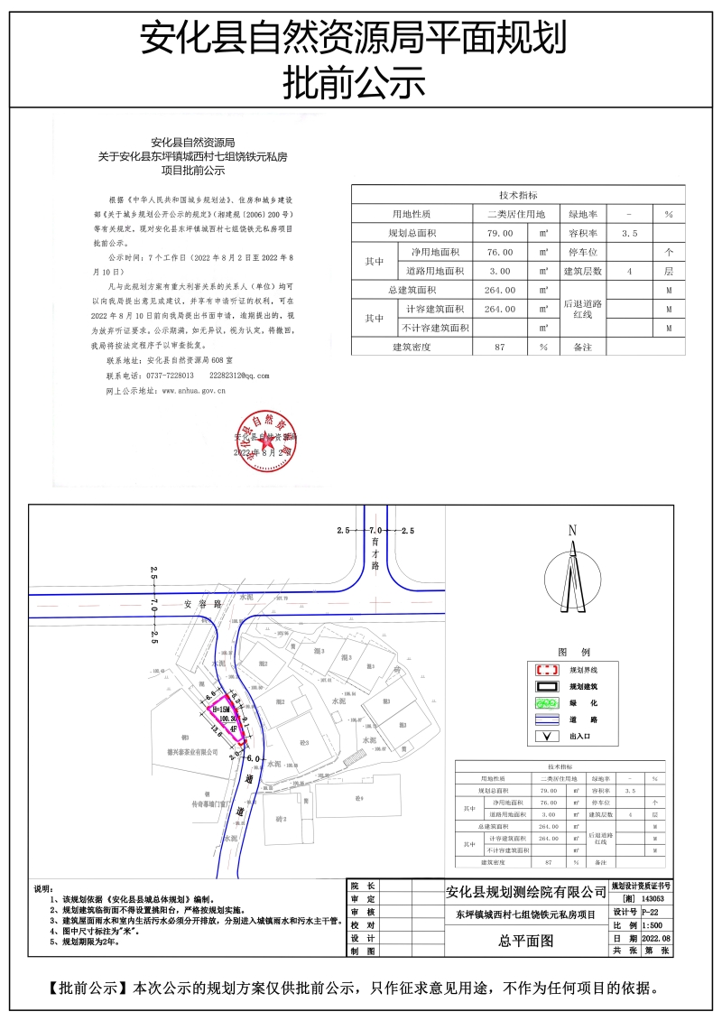 关于安化县东坪镇城西村七组饶铁元私房项目批前公示