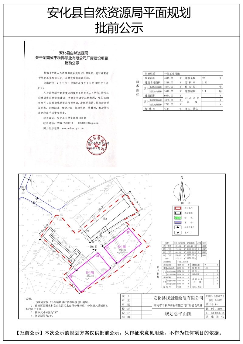 湖南省千秋界茶业有限公司厂房建设项目批前公示