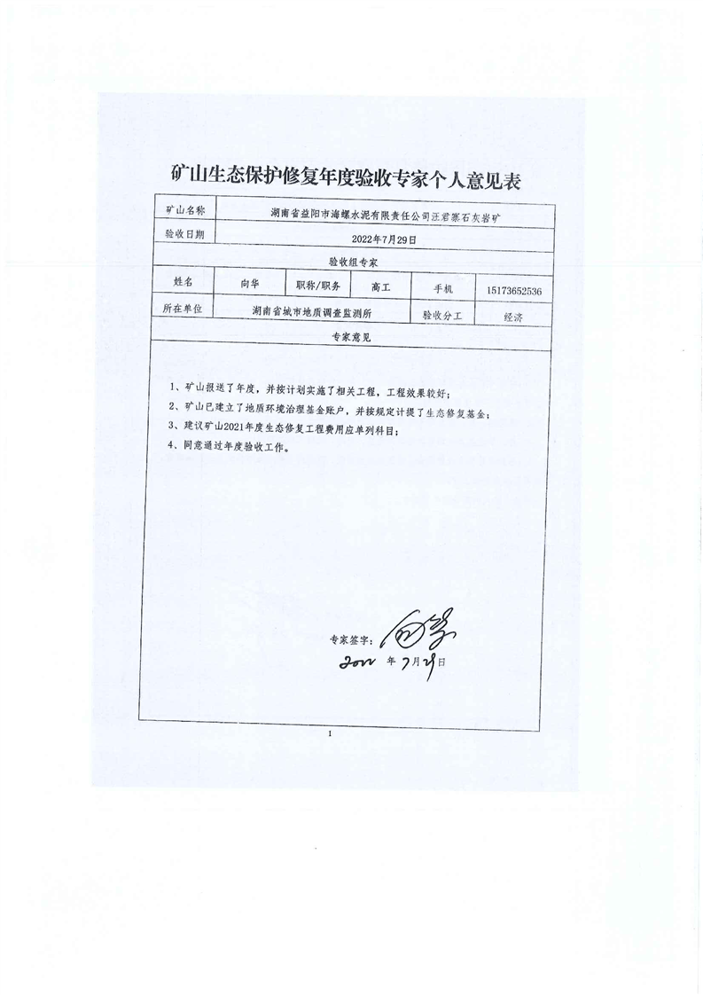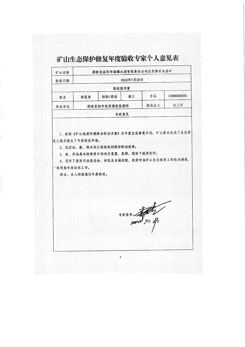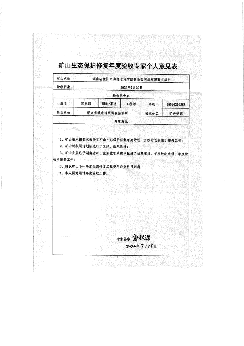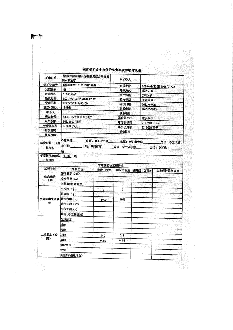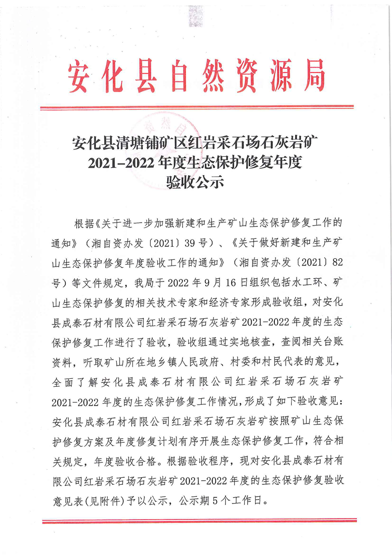 安化县清塘铺矿区红岩采石场石灰岩矿2021-2022年度生态保护修复年度验收公示