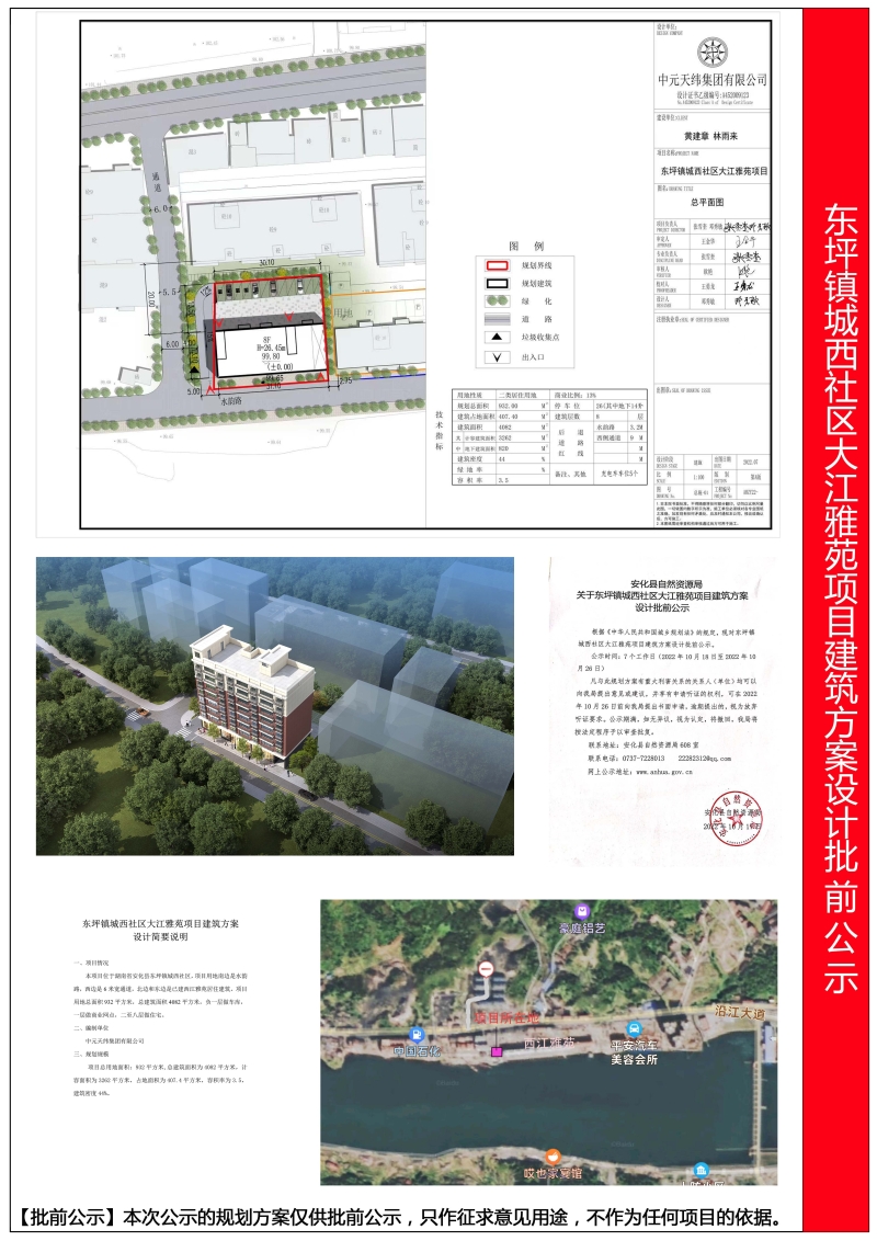 东坪镇城西社区大江雅苑项目建筑方案设计批前公示
