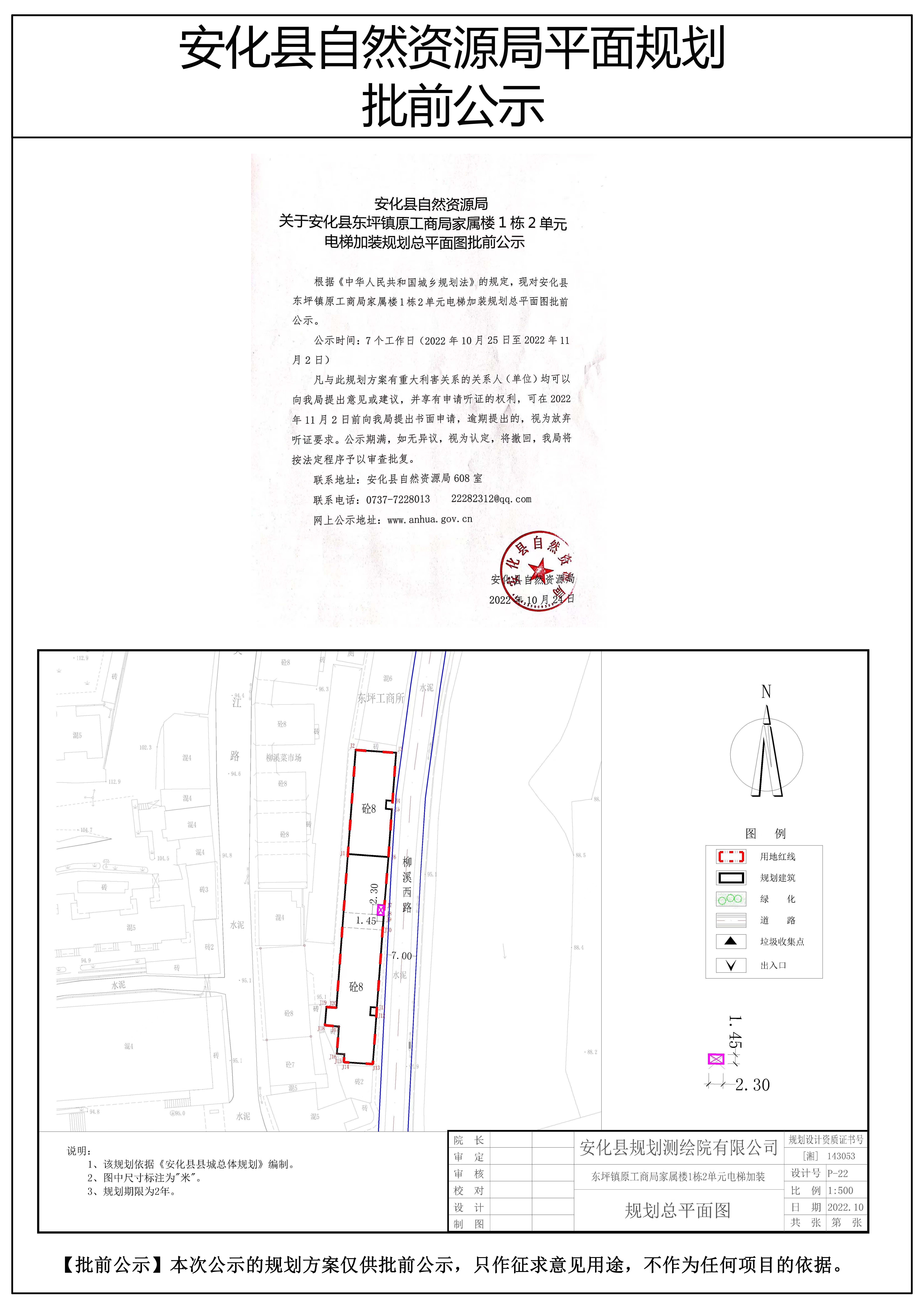 安化县东坪镇原工商局家属楼1栋2单元电梯加装规划总平面图批前公示