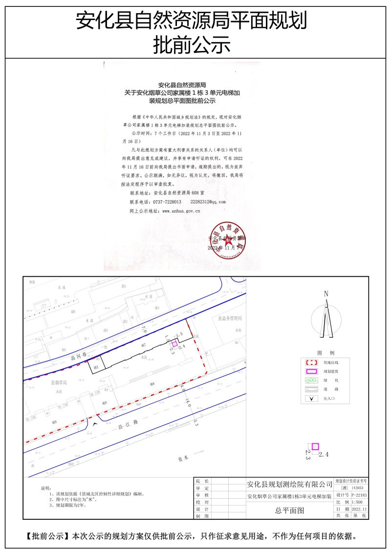 安化烟草公司家属楼1栋2单元、3单元电梯加装规划总平面图批前公示