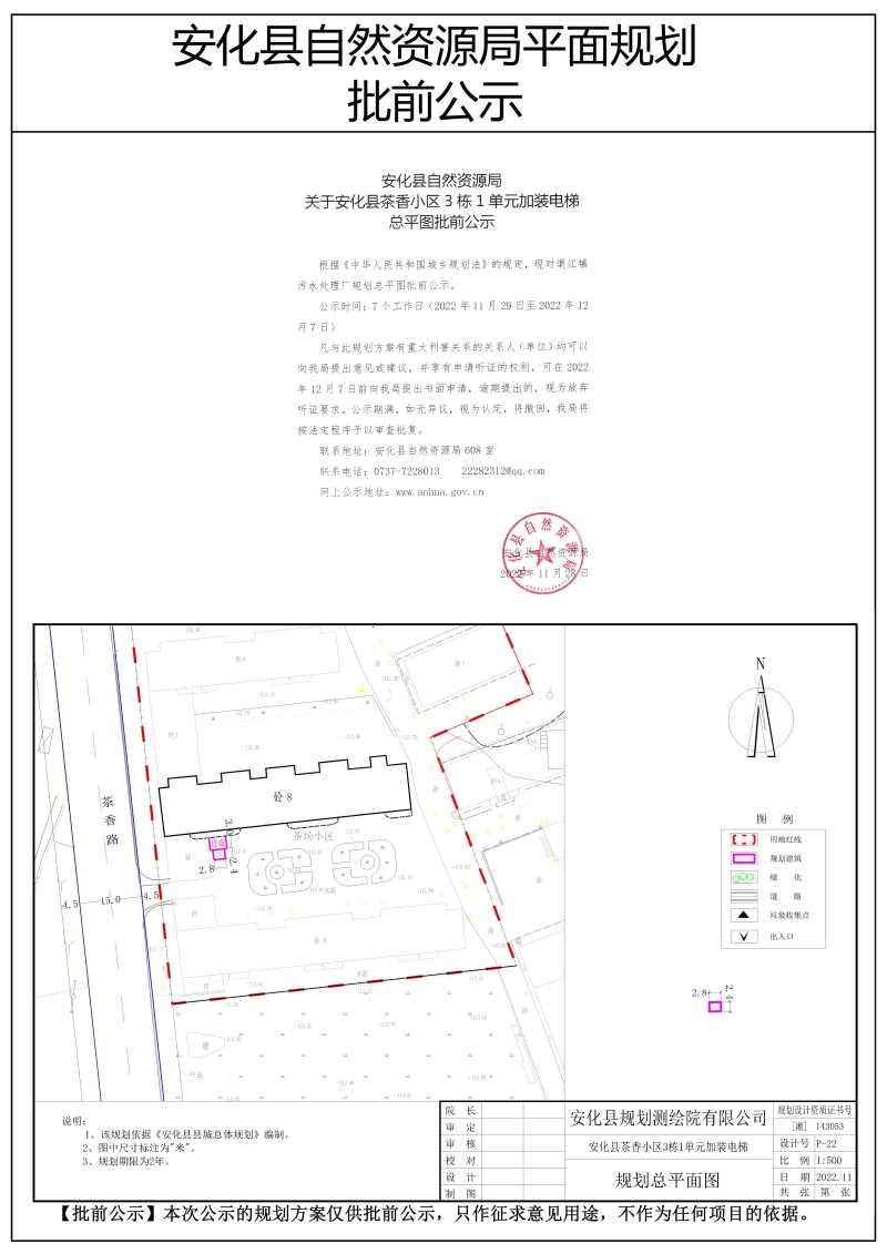 安化县茶香小区3栋1单元加装电梯 总平图批前公示