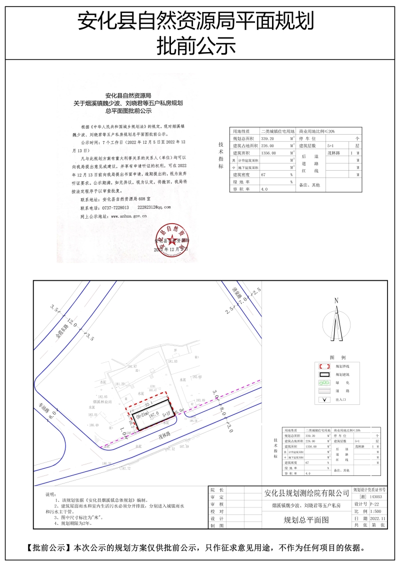 关于烟溪镇魏少波、刘晓君等五户私房规划总平面图批前公示