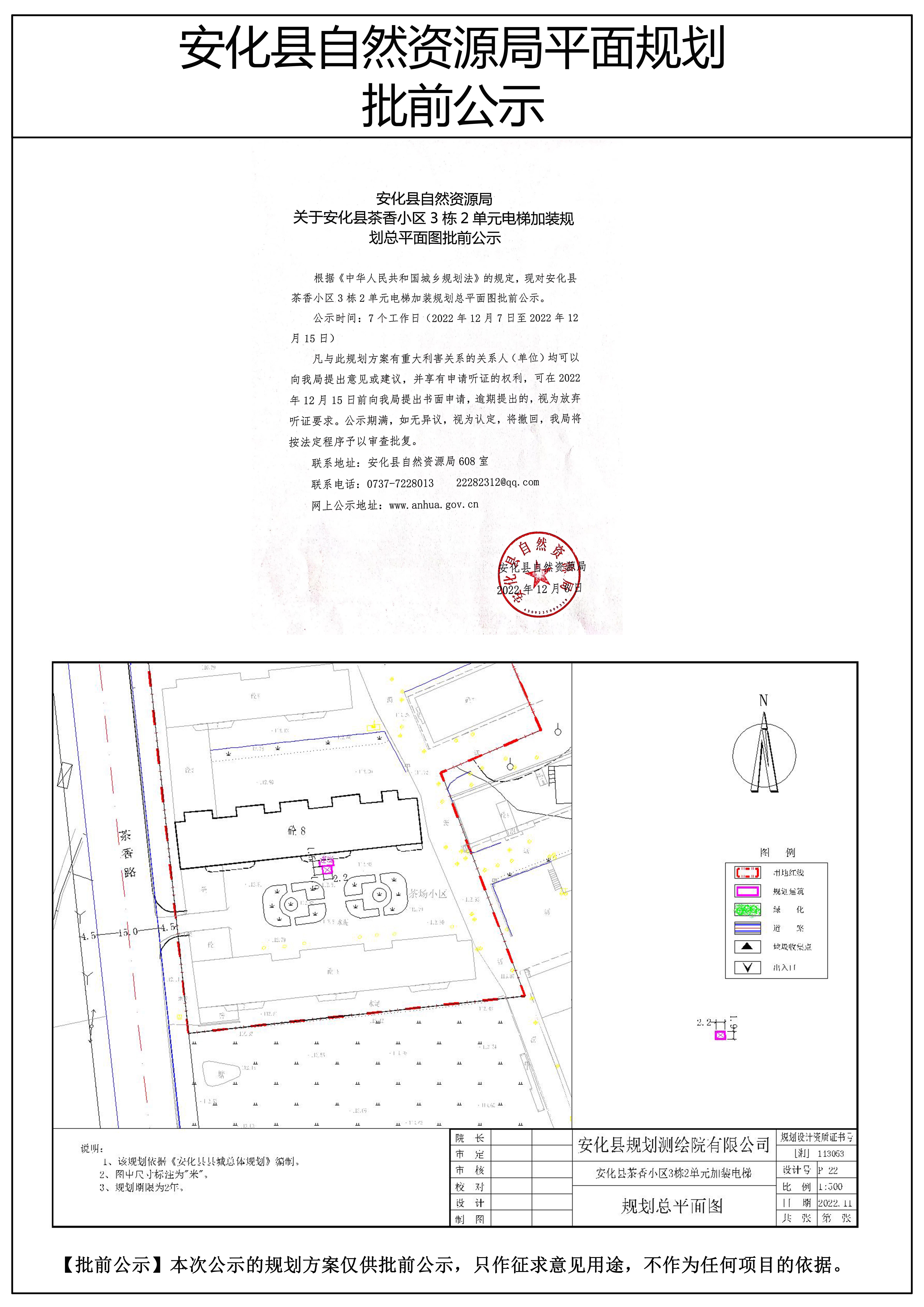 安化县茶香小区3栋2单元电梯加装规划总平图批前公示