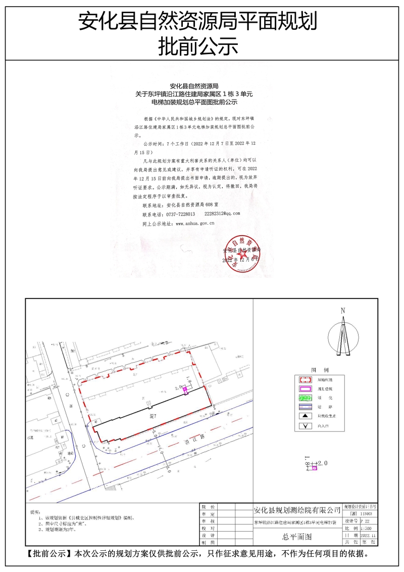 东坪镇沿江路住建局家属区1栋3单元电梯加装规划总平面图批前公示