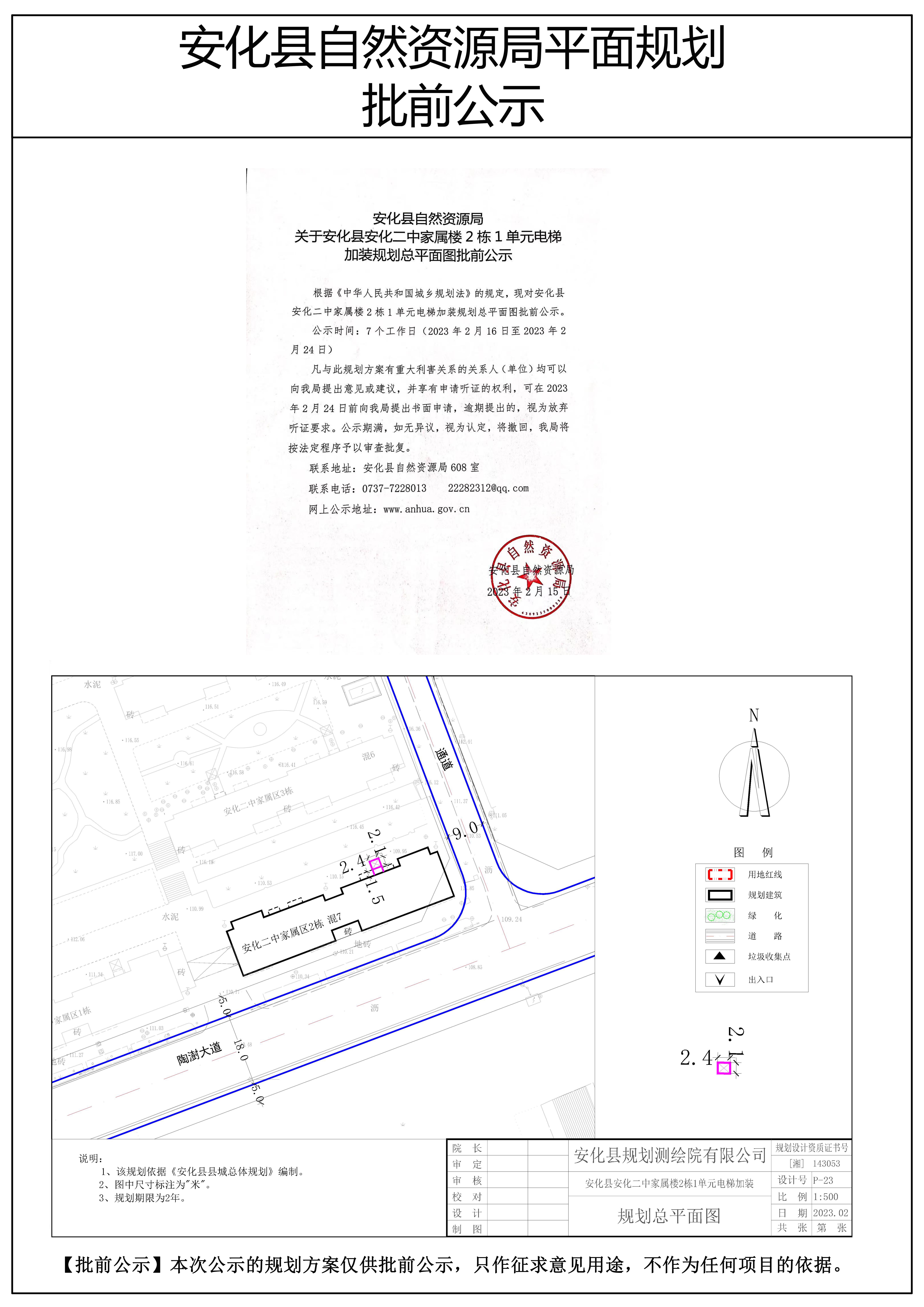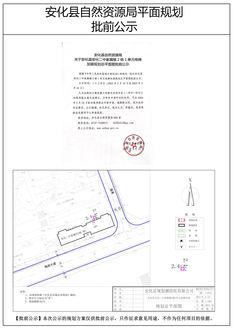 关于安化县安化二中家属楼2栋1单元电梯加装规划总平面图批前公示