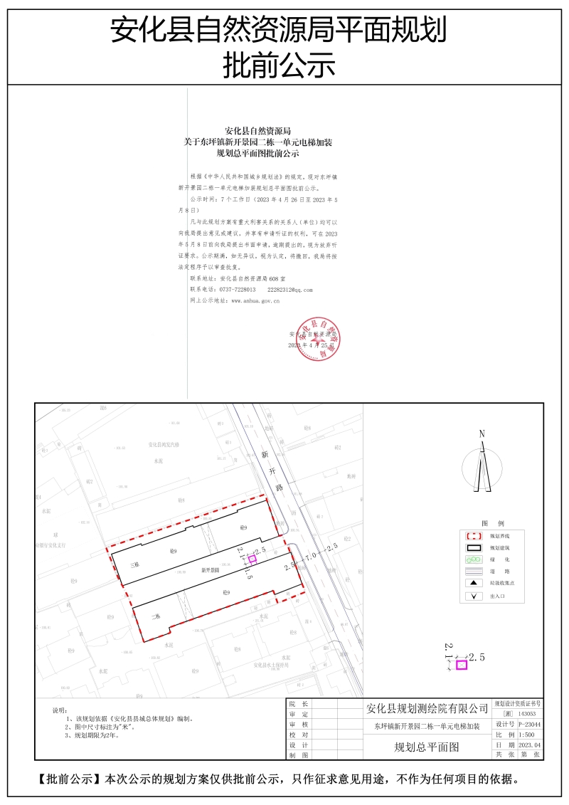 东坪镇新开景园二栋一单元电梯加装规划总平面图批前公示