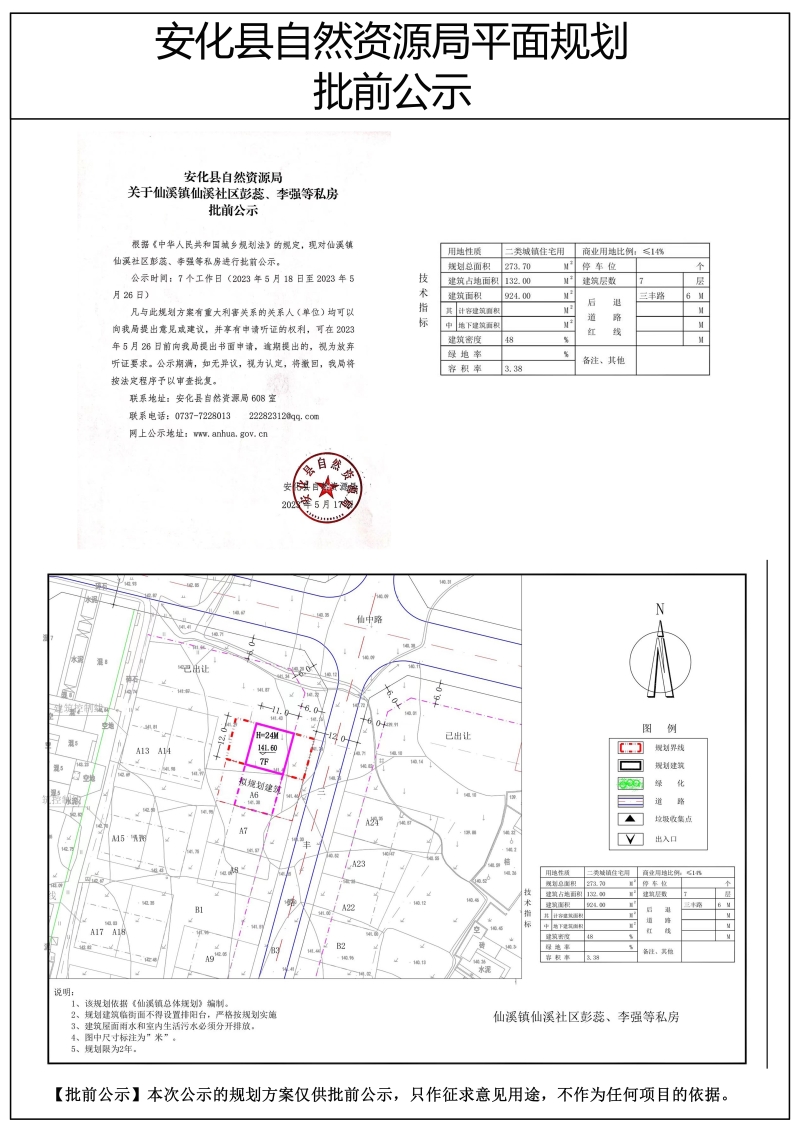 关于仙溪镇仙溪社区彭蕊、李强等私房批前公示
