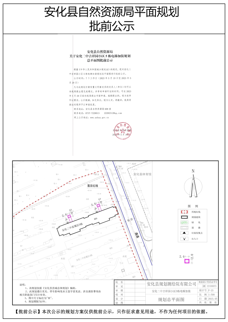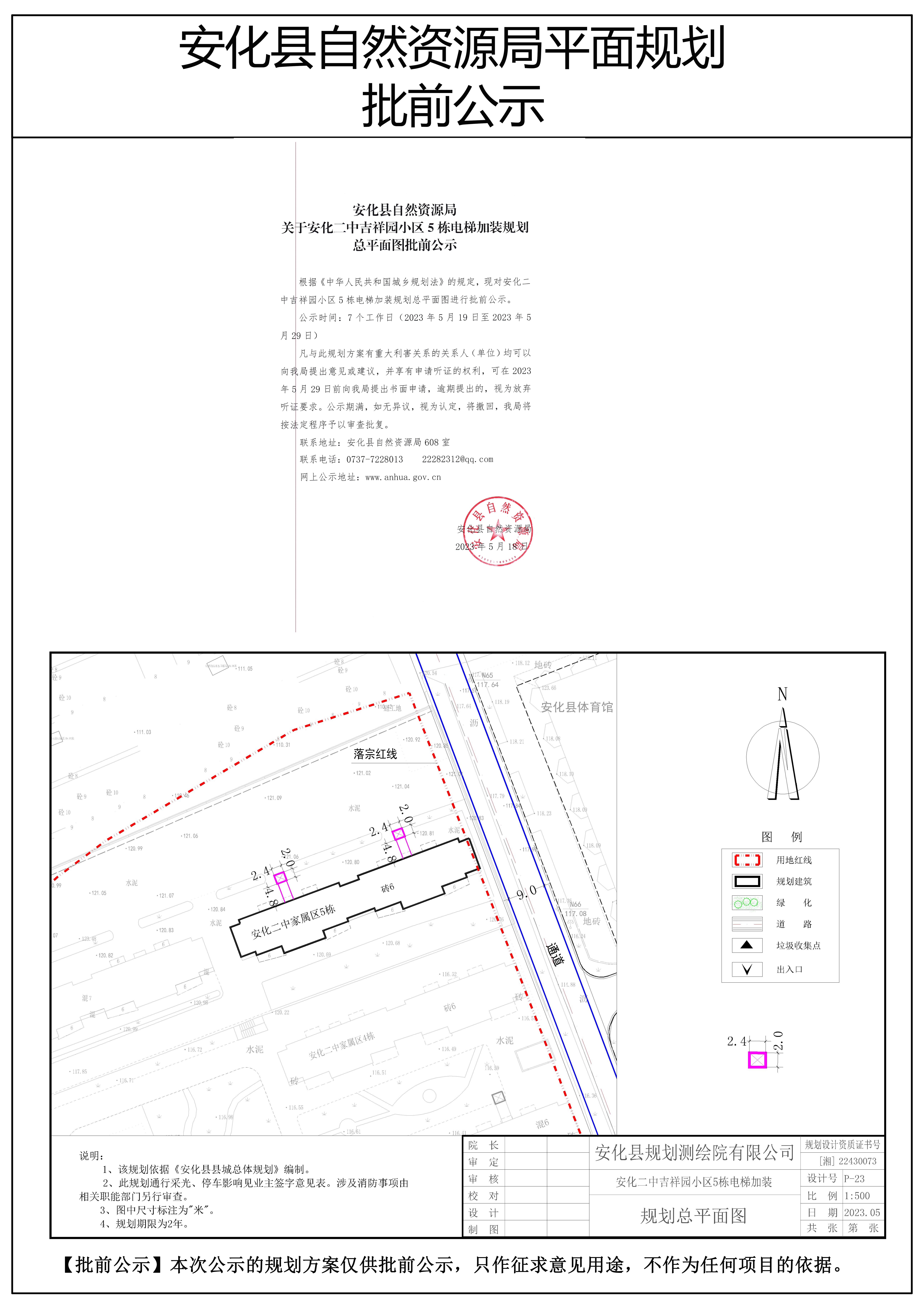关于安化二中吉祥园小区5栋电梯加装规划总平面图批前公示
