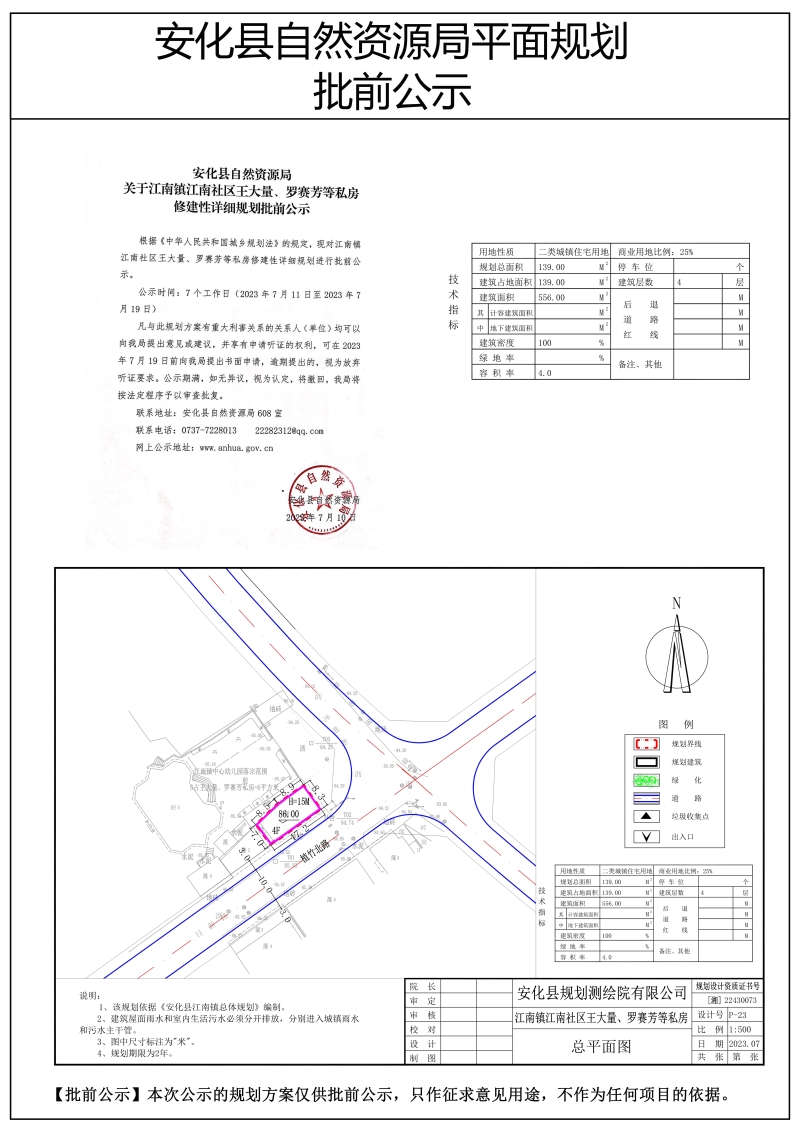 江南镇江南社区王大量、罗赛芳等私房修建性详细规划批前公示