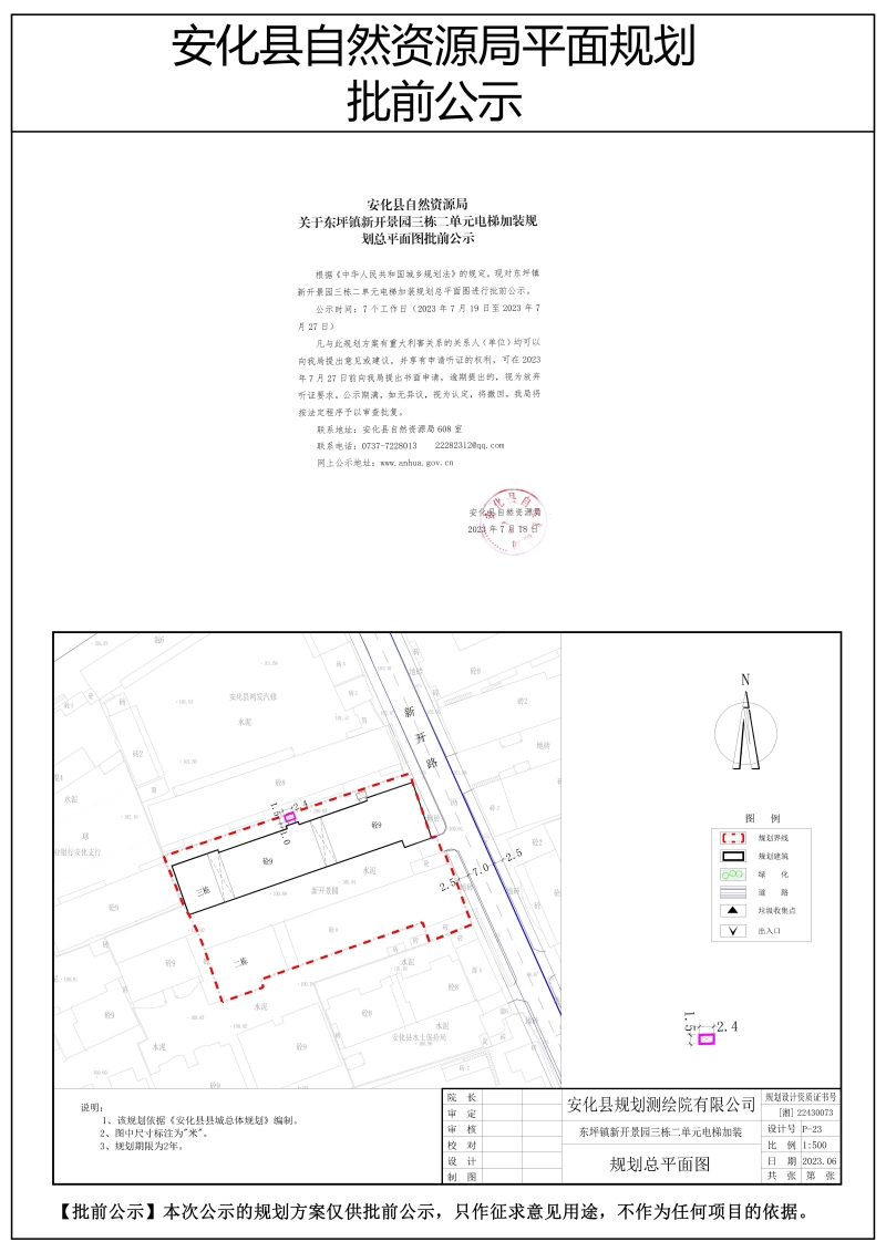 关于东坪镇新开景园三栋二单元电梯加装规划总平面图批前公示