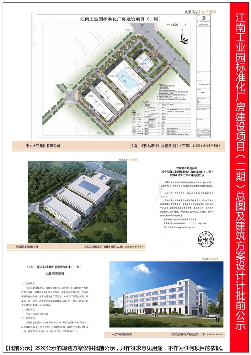 江南工业园标准化厂房建设项目(二期)总图及建筑方案设计批前公示