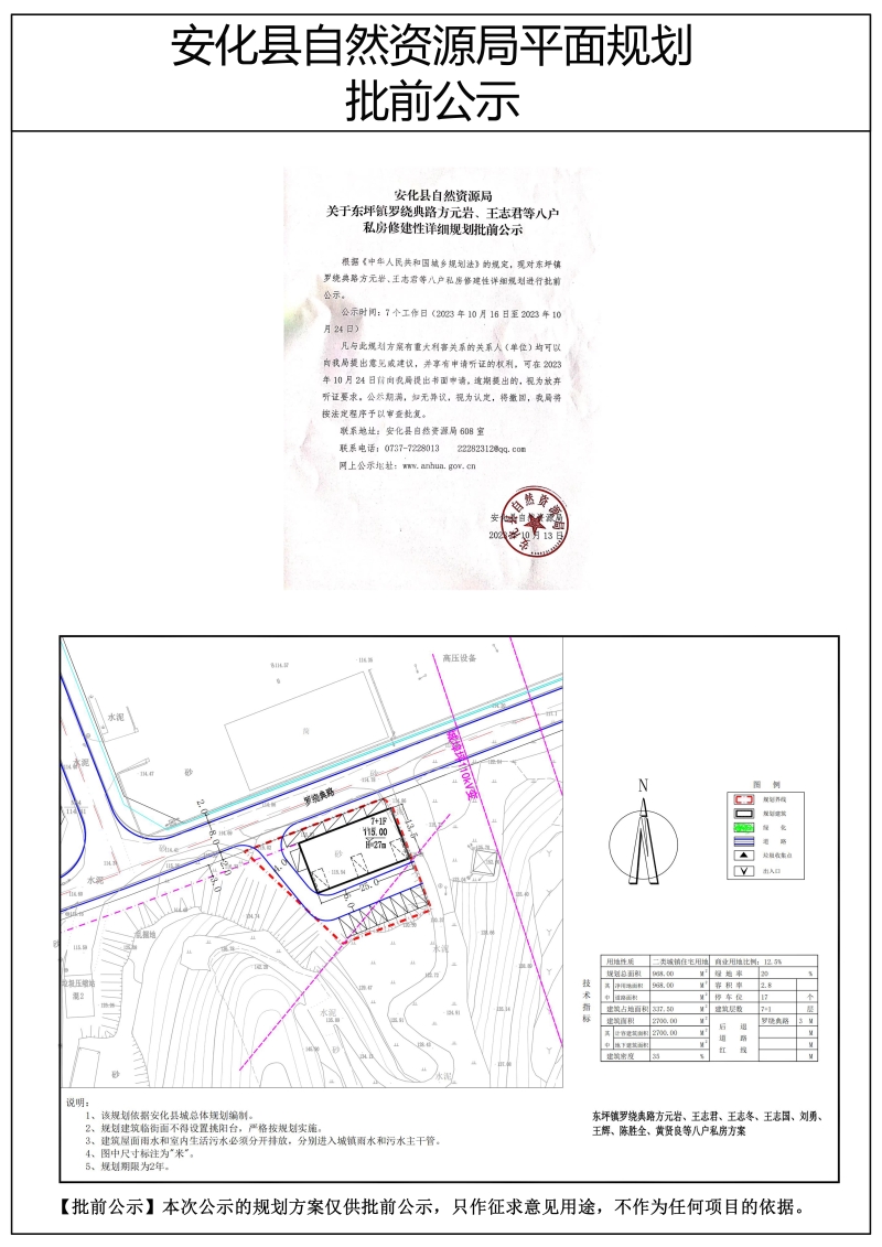 关于东坪镇罗绕典路方元岩、王志君等八户私房修建性详细规划批前公示