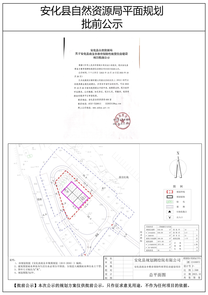 安化县南金乡教育保障性租赁住房建设项目批前公示