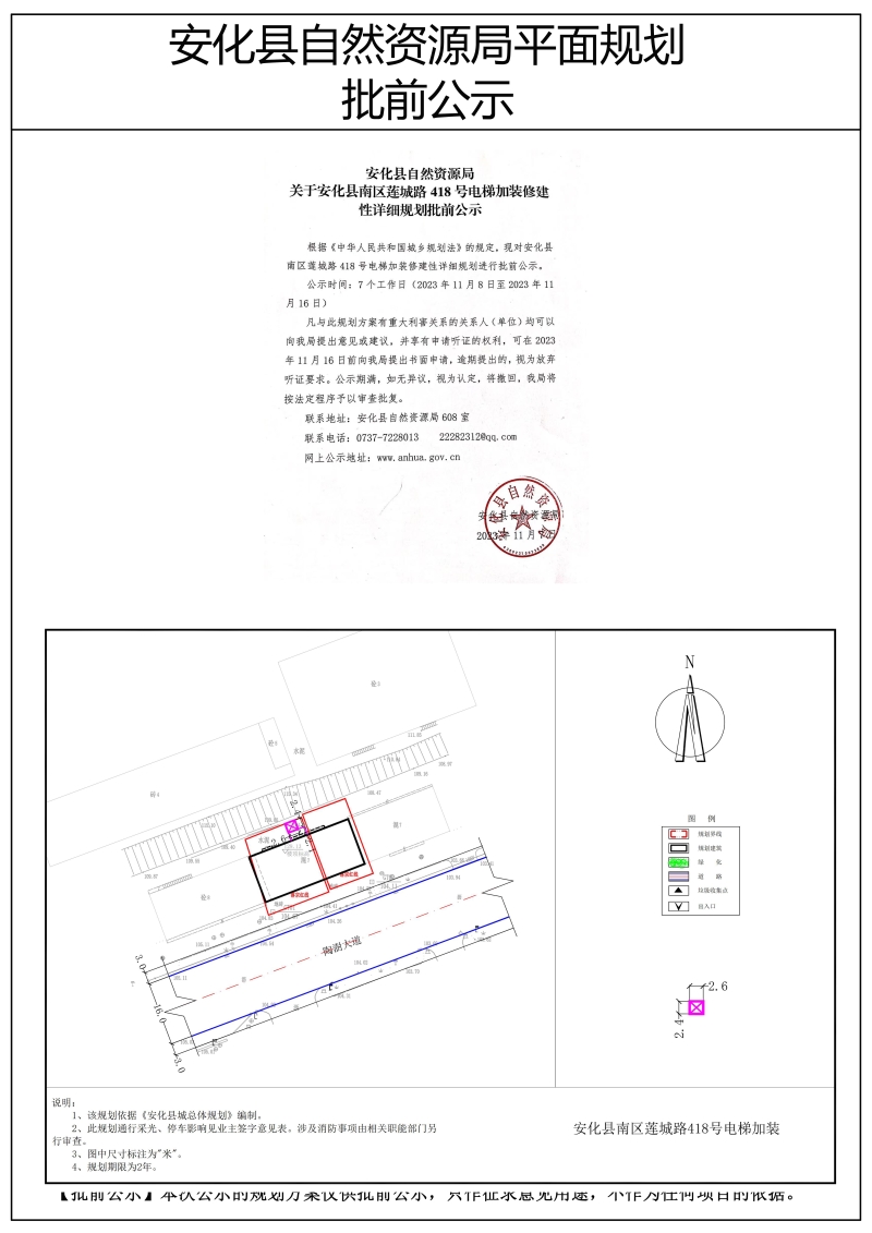 安化县南区莲城路418号电梯加装修建性详细规划批前公示