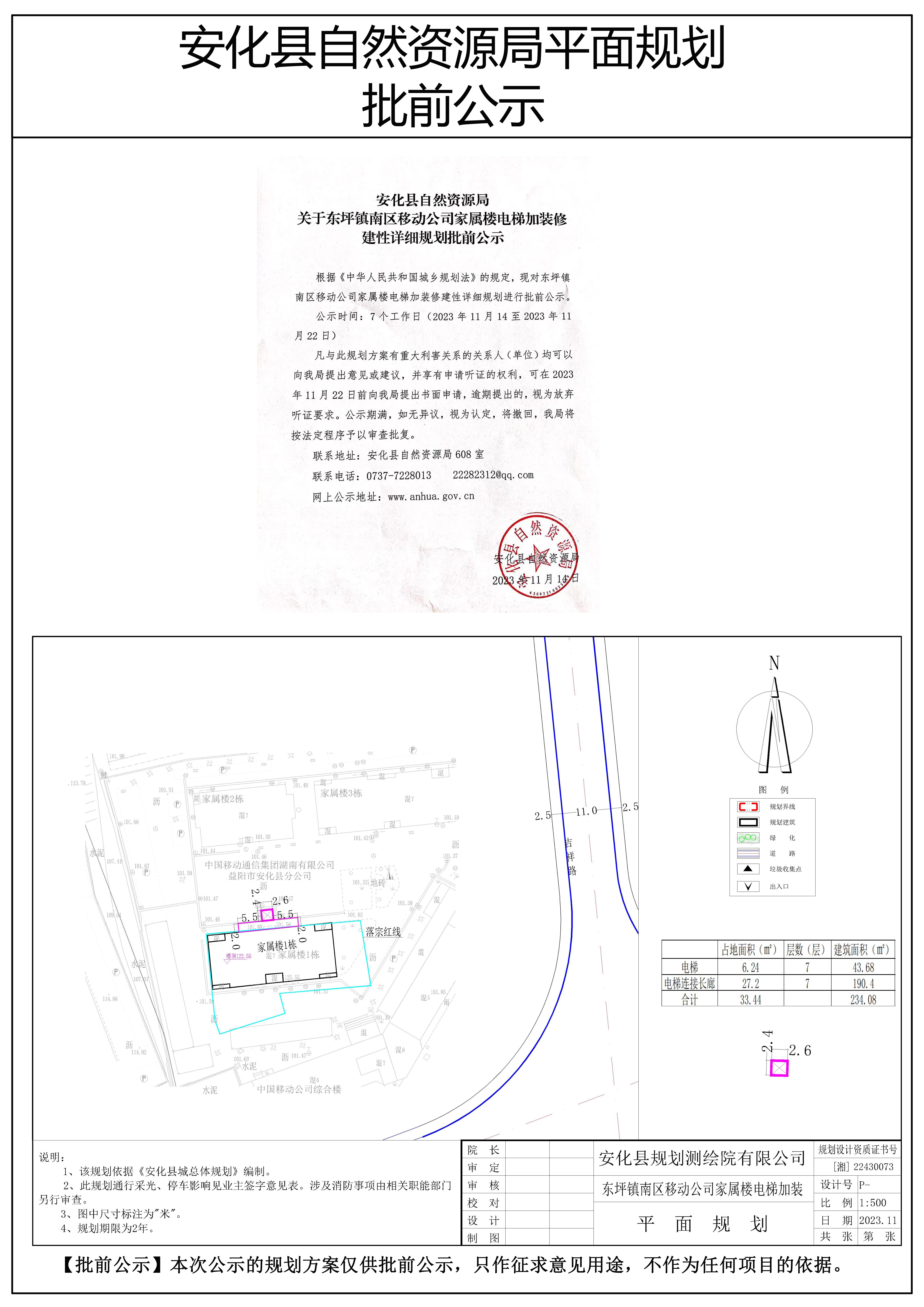 东坪镇南区移动公司家属楼电梯加装修建性详细规划批前公示