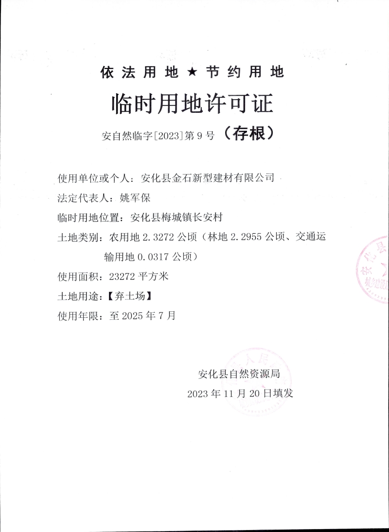 湖南省安化县长茅田矿区建筑石料用灰岩矿排土场临时用地