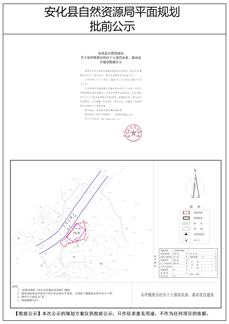 关于东坪镇黄合社区十八巷肖应求、谌对花自建房批前公示