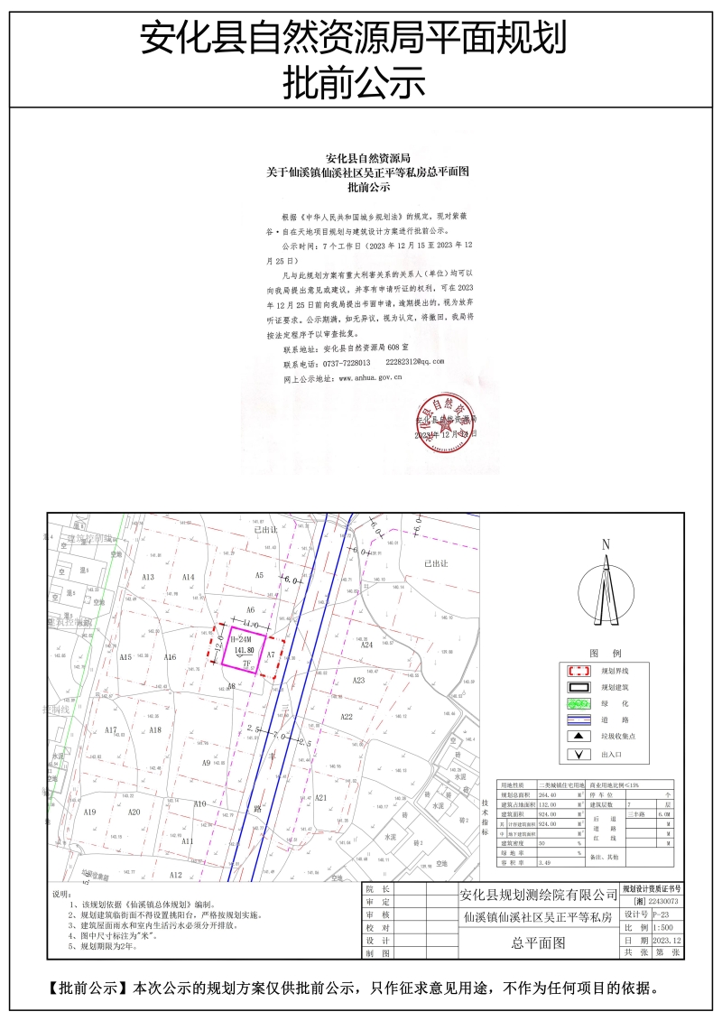 仙溪镇仙溪社区吴正平等私房总平面图批前公示