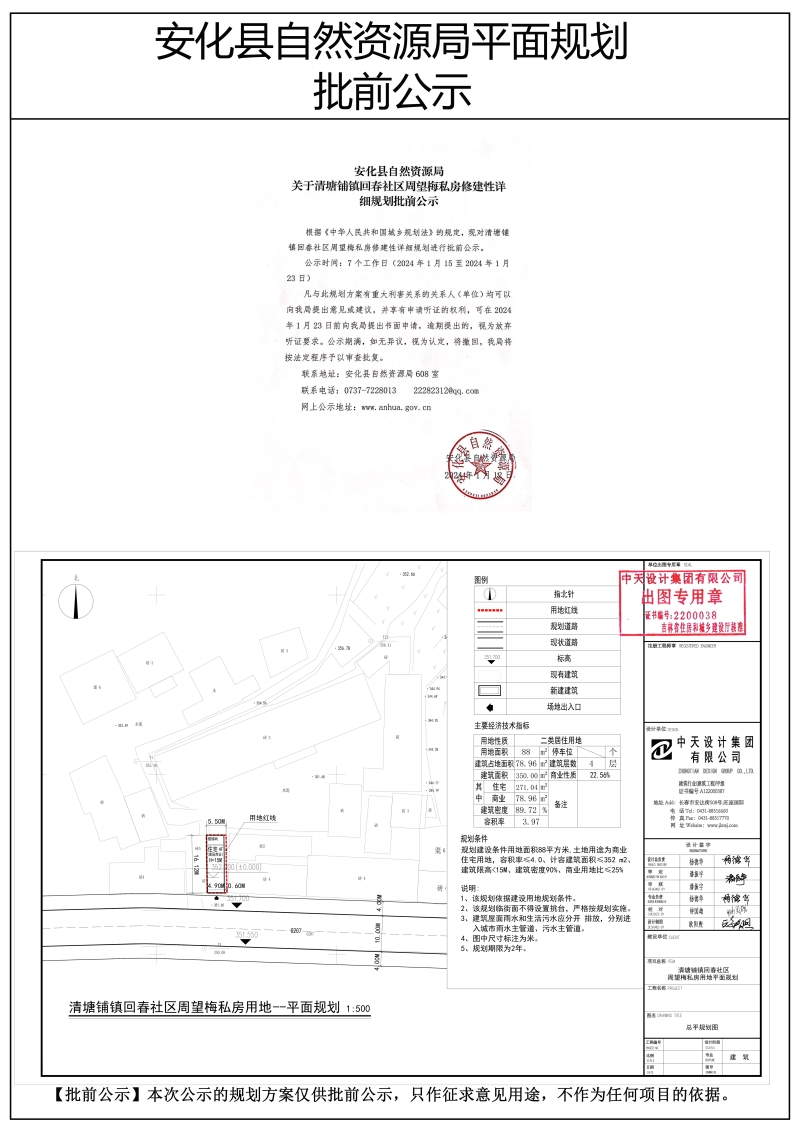 清塘铺镇回春社区周望梅私房修建性详细规划批前公示