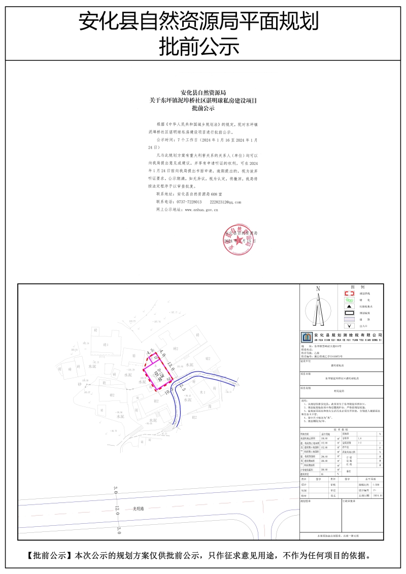 关于东坪镇泥埠桥社区谌明球私房建设项目批前公示