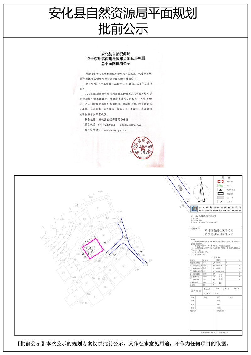 东坪镇酉州社区邓孟娟私房项目 总平面图批前公示