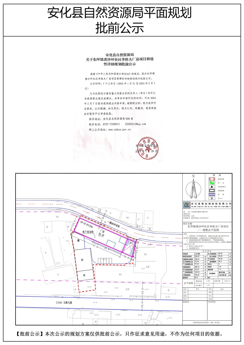 关于东坪镇黄沙坪社区李胜夫厂房项目修建性详细规划批前公示