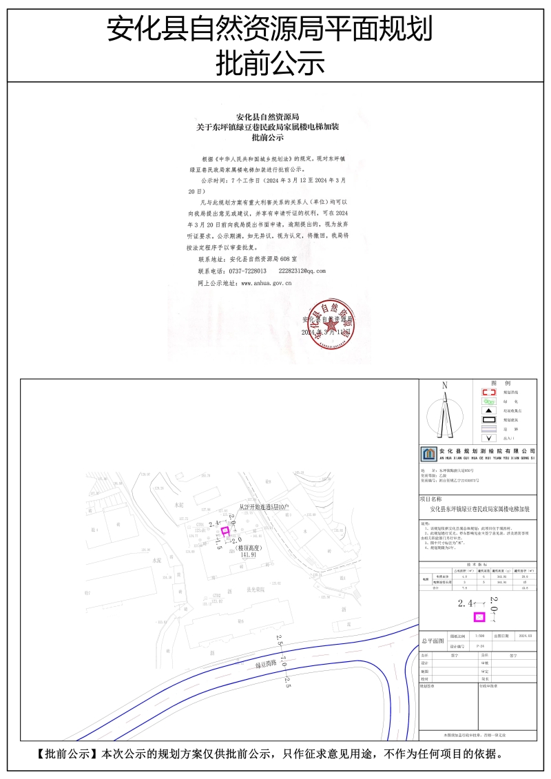 关于东坪镇绿豆巷民政局家属楼电梯加装 批前公示