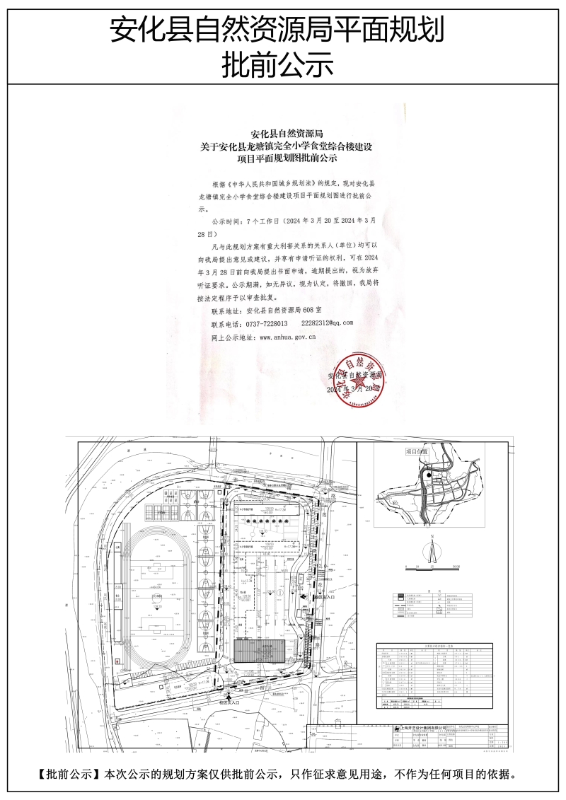 安化县龙塘镇完全小学食堂综合楼建设项目平面规划图批前公示