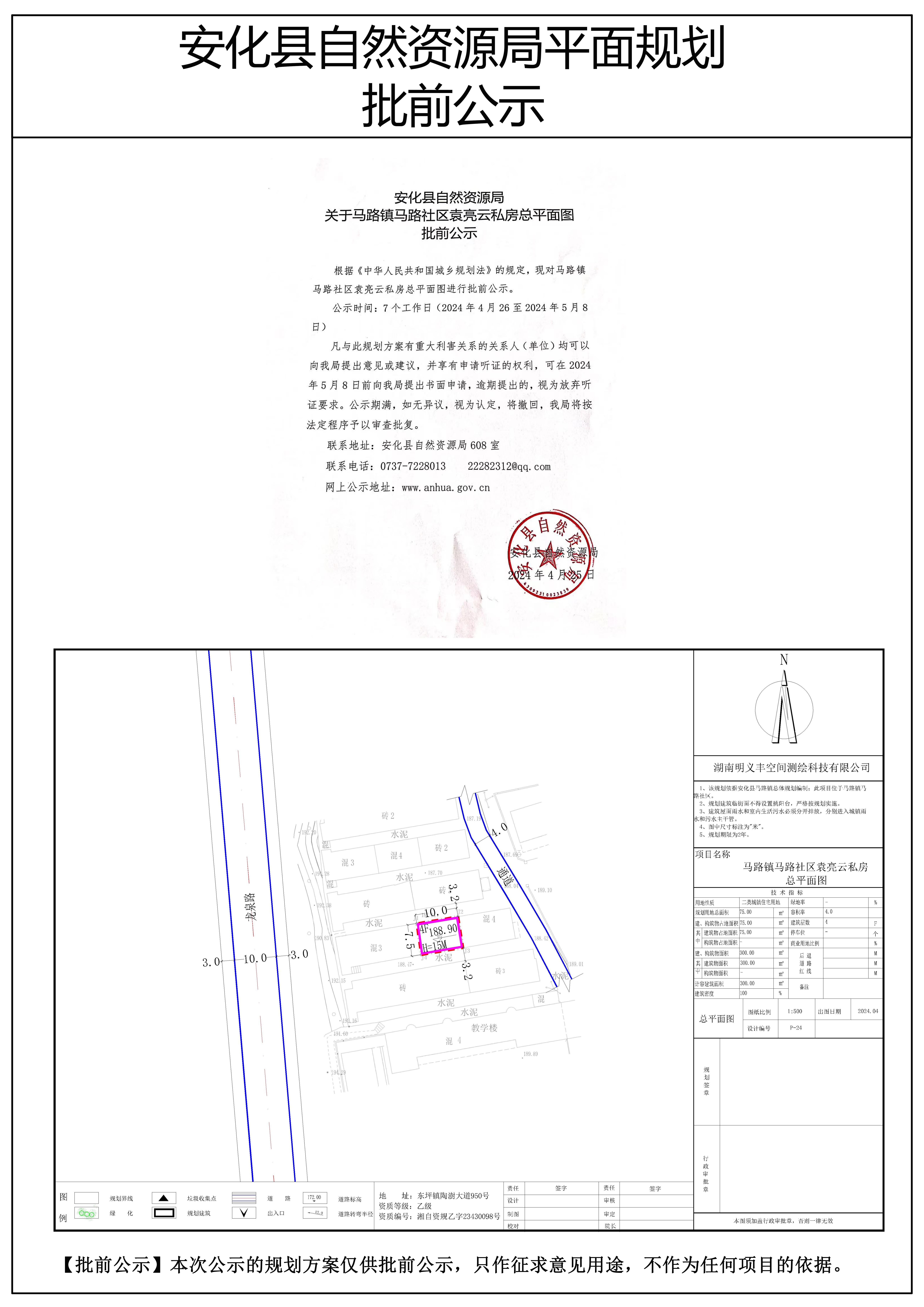 马路镇马路社区袁亮云私房总平面图 批前公示