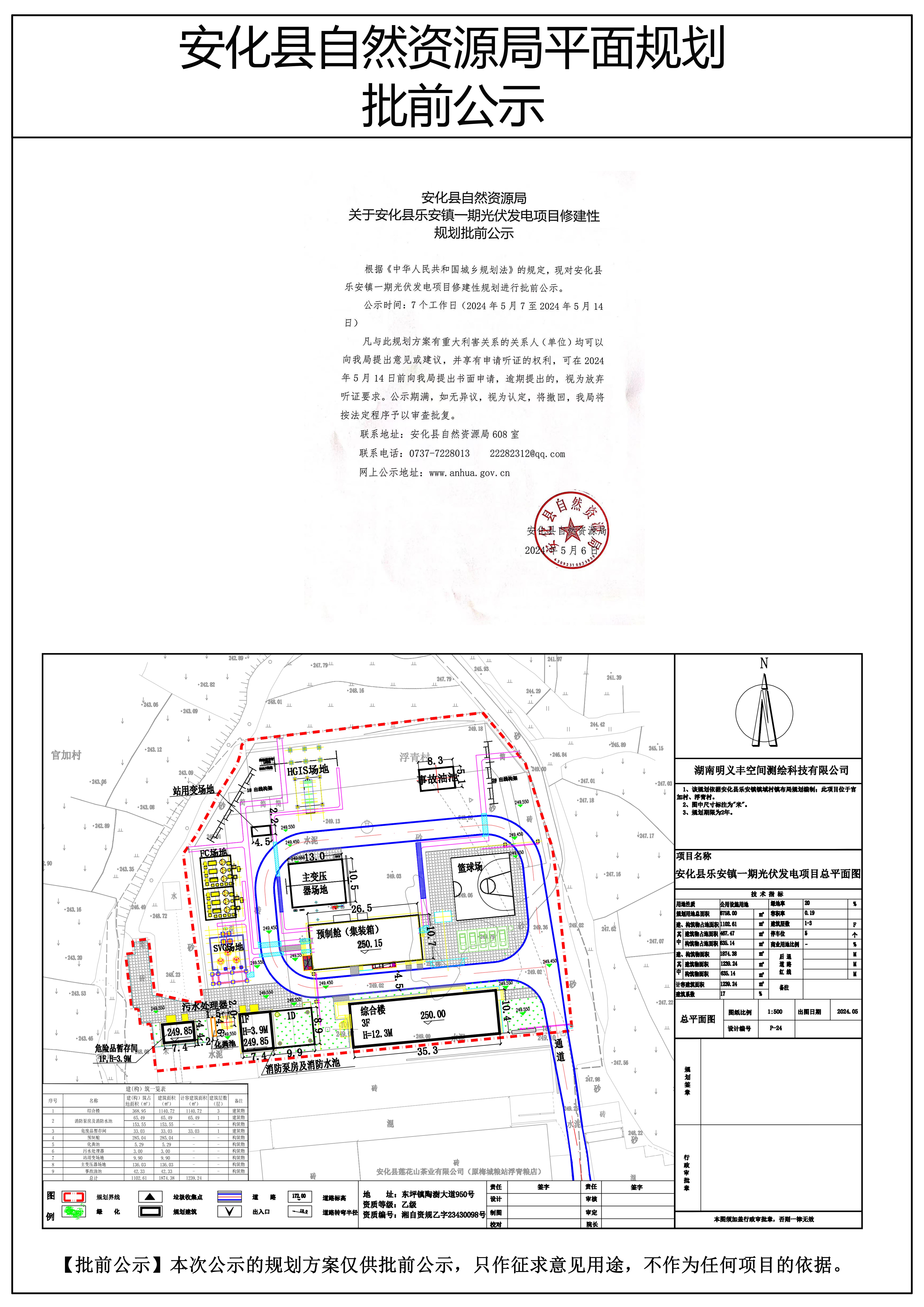 安化县乐安镇一期光伏发电项目修建性规划批前公示