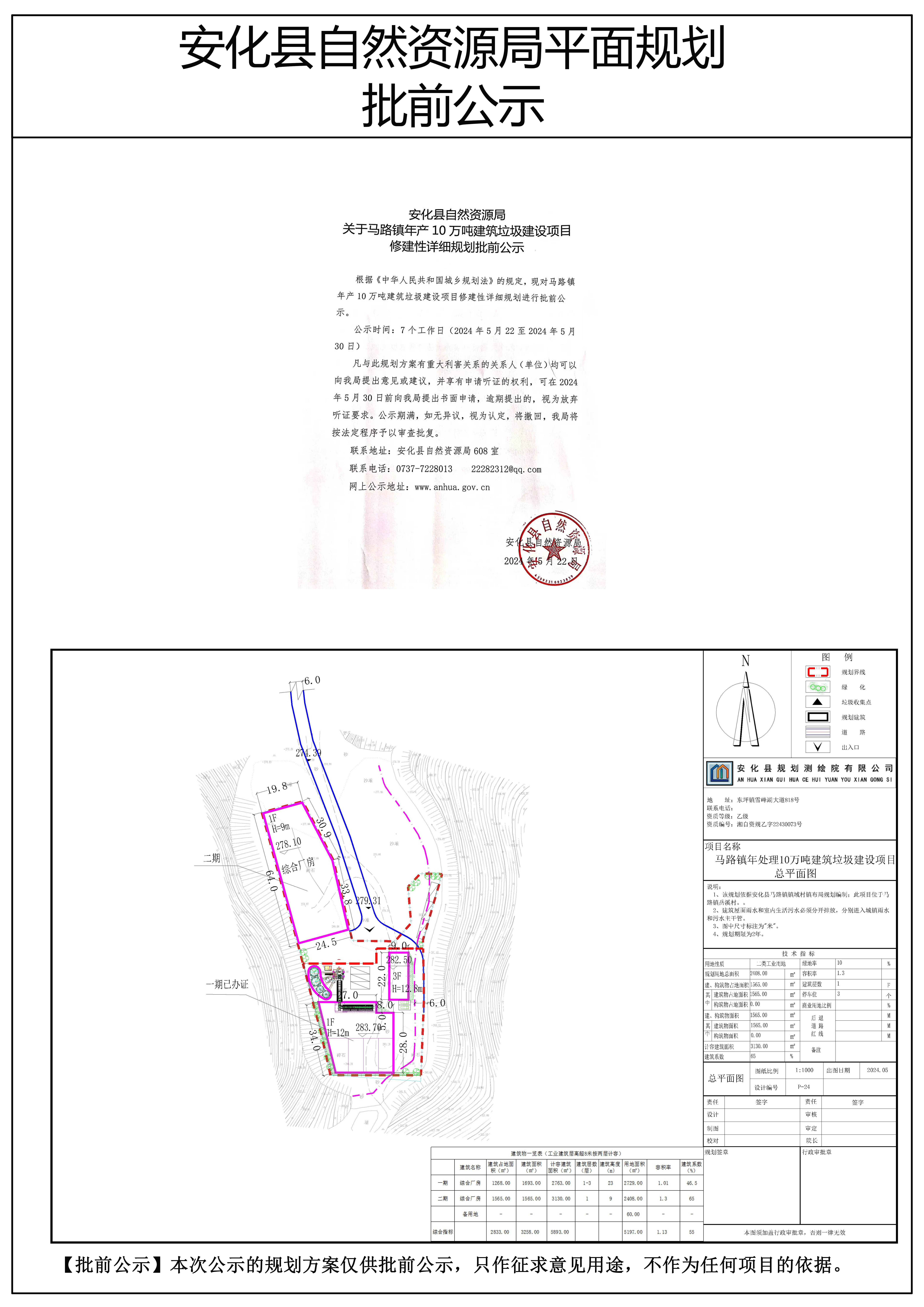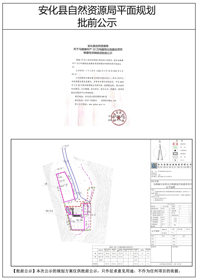 马路镇年产10万吨建筑垃圾建设项目修建性详细规划批前公示