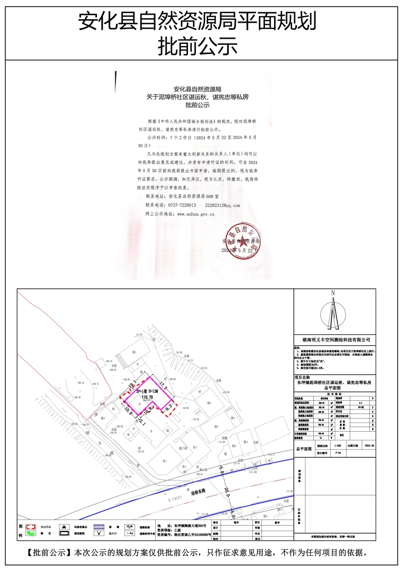 东坪镇泥埠桥社区谌运秋、谌宪忠等私房进行批前公示