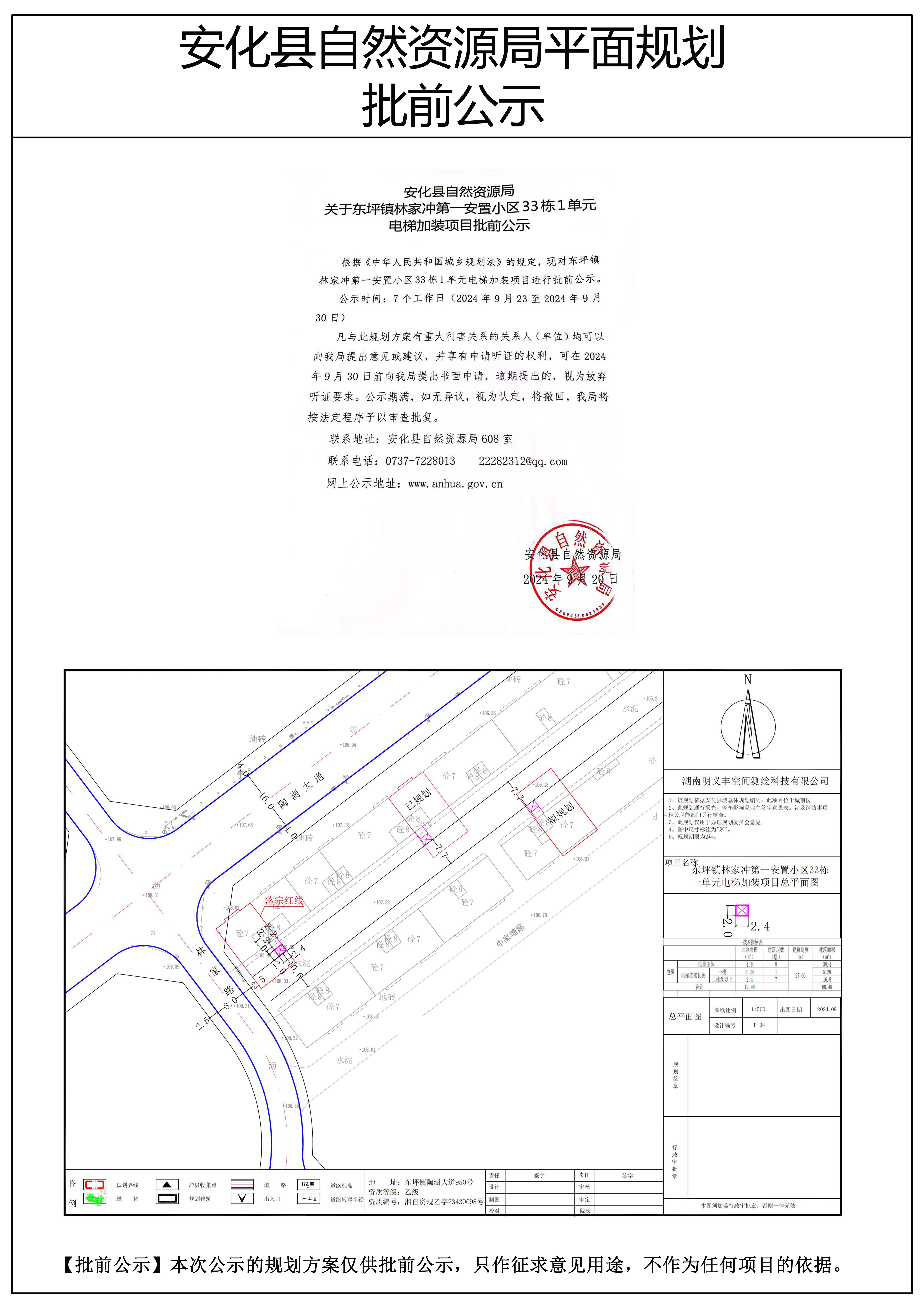 东坪镇林家冲第一安置小区33栋1单元电梯加装项目批前公示