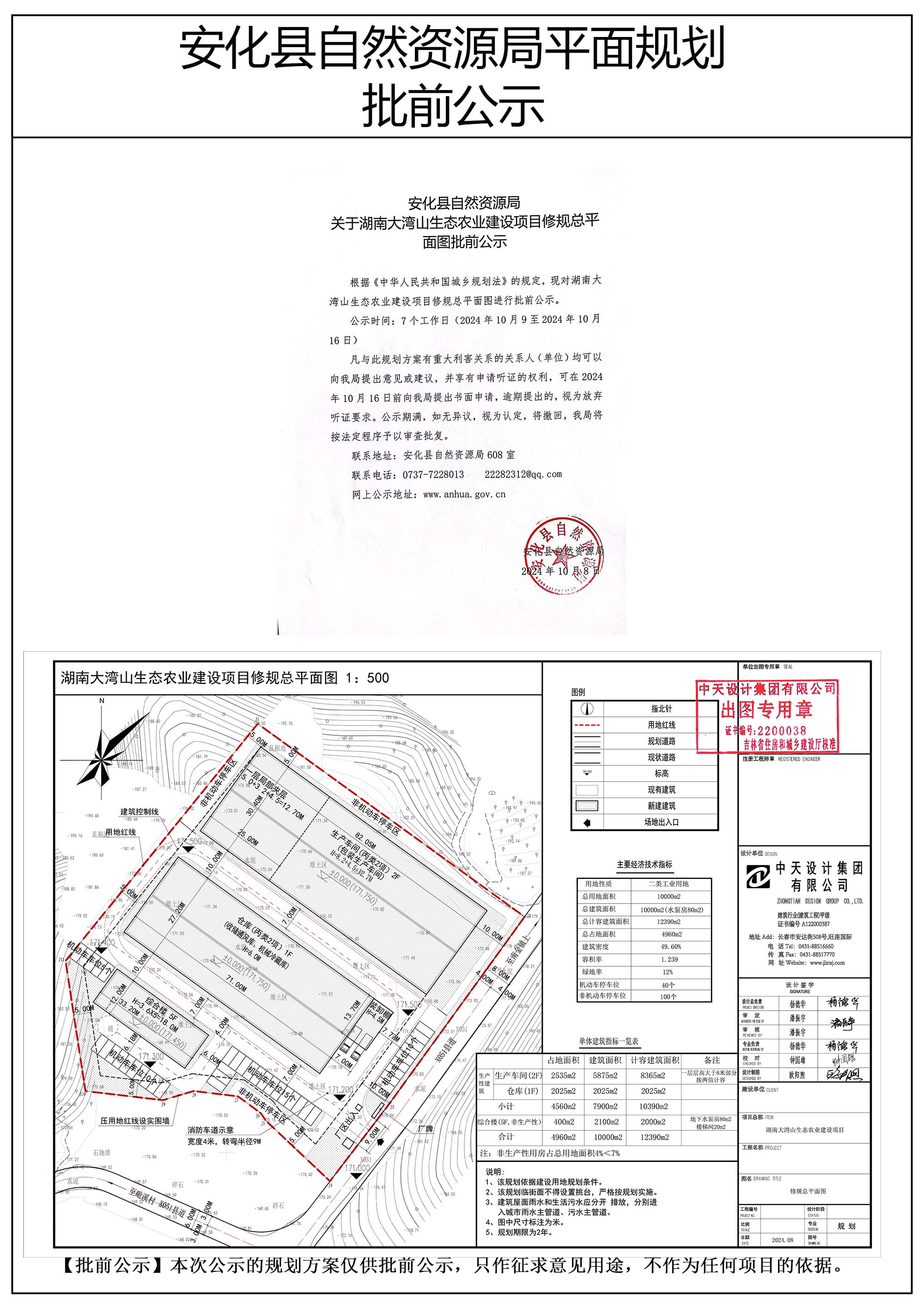 湖南大湾山生态农业建设项目修规总平面图批前公示
